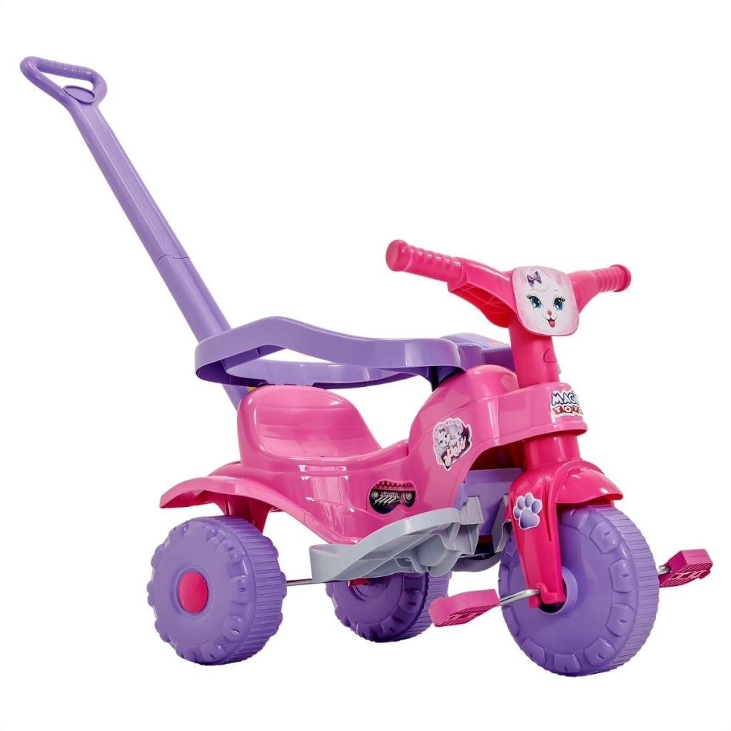 O anúncio contém: 01 Triciclo Infantil. Principais dúvidas: Possuí som? Não. Possuí luz? Não. Possuí pilha ou bateria? Não. Possuí haste? Sim. Um lindo triciclo para passear e curtir os melhores momentos com seu filho, pesando em todos os detalhes os Triciclos da Magic Toys atende a todos os requisitos de segurança, garantindo um passeio divertido para seu bebê. Não perca a oportunidade de dar o melhor presente para seu filho! Benefícios: É uma boa e divertida alternativa para se passear com seu filho. Auxilia no desenvolvimento de habilidades visuais, auditivas, coordenação motora e raciocínio. Informações: Idade mínima recomendada: +12 meses. Dimensões aproximadas do produto (AxLxC): 78,5cm x 41,5cm x 97,5cm. Peso máximo suportado : 20 kg. Material: Plásticos. Marca: Magic Toys. - Produto novo e em estoque; - As cores do tecido ou produto podem variar de acordo com o lote de fabricação; - Todos os produtos têm seguro contra extravio.