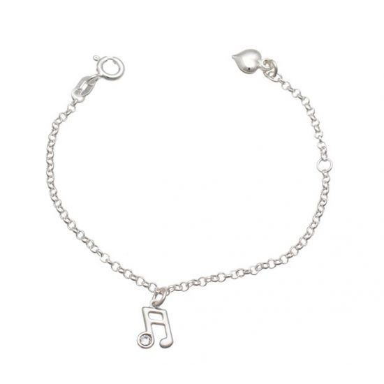 Pulseira infantil nota musical prata 925 Tamanho: 14cm Itens inclusos Certificado de GarantiaNota Fiscal Todas as nossas peças são de prata legítima, compre e tenha certeza de receber uma joia com duração para o resto da vida. A prata 925 é um material que tem garantia e durabilidade permanente, assim como o ouro 18k. Nossas jóias tem certificado de autenticidade reconhecidos no mundo todo, você pode levar em qualquer joalheria para efetuar os testes e comprovar a autenticidade das mesmas. Havendo dúvidas, não hesite em perguntar por favor! Será um prazer atendê-lo. Aqua Jóias