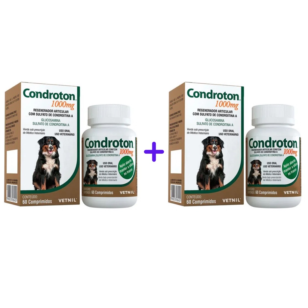 A MANADA ANIMAL é um marketplace de produtos veterinários. É a escolha certa para tutores que prezam pela qualidade dos produtos que seu animal necessita. Tudo com o suporte de uma equipe de veterinários e gestores com mais de 10 anos de experiência no mercado. Fique tranquilo, todos os nossos produtos são originais, adquiridos através de distribuidores credenciados! Ah, e todas as vendas acompanham nota fiscal! MANADA ANIMAL, Tranquilidade pra você, cuidado para ele! _________________________________ Condroton® Regenerador Articular com Sulfato de Condroitina A. O Sulfato de Condroitina e a Glucosamina têm um tropismo para os tecidos articulares e cartilagíneos, onde se ligam seletivamente à cartilagem degradada ou lesada, iniciando o processo de regeneração deste tecido. O uso dos glicosaminoglicanos objetiva a reposição do que foi perdido durante processos patológicos (condropreparação) e do que se perde na atividade normal do animal (condroproteção). Outra importante propriedade é o efeito anti-inflamatório, notado após a utilização desses compostos. Os glicosaminoglicanos também inibem a ação de enzimas lisossomais (liberadas por leucócitos no fluido sinovial), induzem a produção de hialuronato de sódio e estimulam a síntese de colágeno. Outros efeitos fisiológicos do Sulfato de Condroitina são: contribuição à ossificação e calcificação dos ossos, além da manutenção da elasticidade de tendões e ligamentos. INDICAÇÃO Indicado para cães para auxiliar os tratamentos de artropatias não infecciosas, tais como: artrites, artroses, osteoartroses, hidroartroses, artropatias degenerativas, displasias coxofemorais, espondiloses, espondiloses anquilosantes, condropatias, sinovites, doenças tendíneas, osteodistrofias e condrodistrofias; pós-operatório de cirurgias articulares, coadjuvante em casos de fraturas, além de atuar também na profilaxia de doenças osteoarticulares e condroproteção de animais submetidos a grandes esforços. UTILIZAÇÕES • Artropatias em geral; • Doenças tendíneas; • Pós-operatório de cirurgias articulares; • Auxiliar para os casos de fratura; • Prevenção de doenças osteoarticulares; • Condroproteção para animais submetidos a grandes esforços. MODO DE USAR Para ser usado por via oral. CADA 100 g CONTÉM Sulfato de Condroitina A 20.000 mg Glucosamina 30.000 mg Moluscos (Perna canaliculus) 10.000 mg Colágeno 5.000 mg Ácido Ascórbico 5.000 mg Sulfato de Manganês 2.000 mg Veículo q.s.p. 100 g APRESENTAÇÃO Comprimidos de 500 mg ou 1000 mg, acondicionados em frascos plásticos contendo 60 comprimidos. Observação: Classificação - Medicamento.