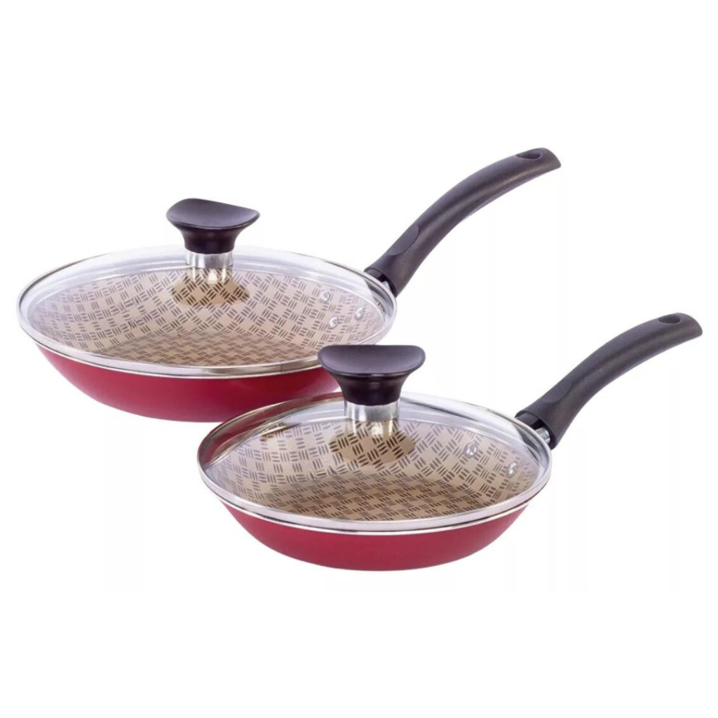 o Jogo de Frigideiras Tramontina Turim em Alumínio com Revestimento Interno e Externo em Antiaderente Starflon Max Vermelho, um conjunto de 2 peças que une qualidade, praticidade e estilo em sua cozinha! As frigideiras são fabricadas com corpo de alumínio de 1,2 mm de espessura, garantindo um cozimento rápido e uniforme para resultados excepcionais. Seu revestimento antiaderente Starflon Max, tanto interno quanto externo, é durável, fácil de limpar e livre de PFOA, proporcionando uma experiência culinária segura e saudável. Os cabos de baquelite antitérmico oferecem segurança durante o manuseio, permanecendo sempre frios ao toque. Além disso, essas frigideiras são adequadas para uso em fogões a gás, elétricos e vitrocerâmicos, proporcionando versatilidade na sua cozinha. O jogo inclui duas tampas de vidro temperado da marca Montre com puxador de baquelite e bordas de aço inoxidável, permitindo que você acompanhe o cozimento dos alimentos enquanto mantém o sabor e a suculência. Com essas frigideiras Tramontina Turim, você terá um conjunto confiável e eficiente, perfeito para todas as suas necessidades culinárias. Aproveite a qualidade reconhecida da marca Tramontina e adicione um toque de estilo à sua cozinha.