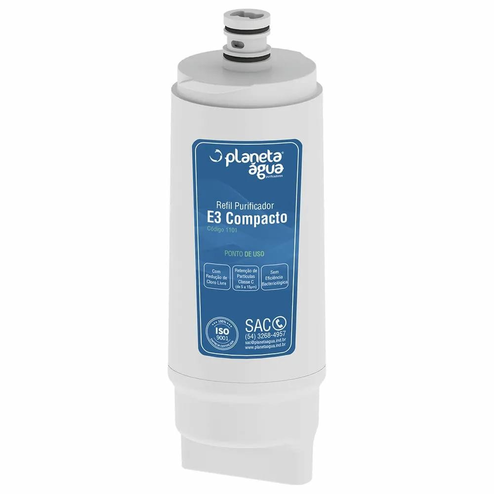 Refil Filtro Planeta Água E3 para Purificador de água IBBL Avanti e MIO, produto de fácil instalação e 03 etapas de filtragem. Filtra até 2,5 mil litros de água. O Filtro Refil E3 Compacto é compatível com os Purificadores IBBL Avanti e Mio. Possui um sistema “Bacteriostático”, responsável por controlar a proliferação de bactérias, além de reter particulados e reduzir o cloro presentes na água. Refil “Girou, Trocou”, mais praticidade e rapidez para a troca. Troque você mesmo o seu refil!