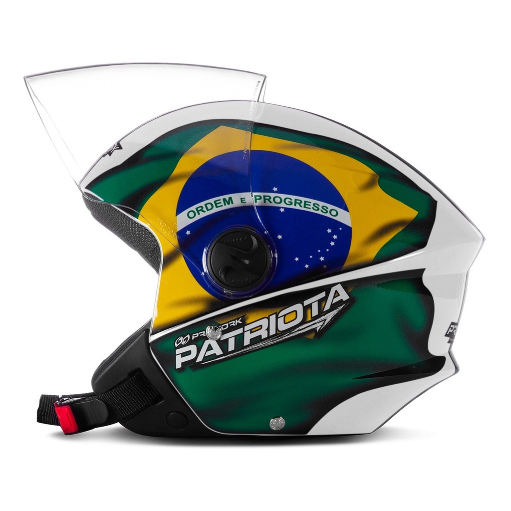 # Auto Equip # Bem vindo! * Produtos de Qualidade * Postagens até 24h * Pagamento facilitado Descrição Capacete Moto Pro Tork Aberto New Liberty 3 Three Patriota Branco e Verde - Pro Tork: Para os amantes e defensores da Nação nós temos os capacetes Pro Tork Patriota, uma linha completa com diversos modelos para você escolher: entre eles está o Capacete New Liberty 3, que traz diversos benefícios como sua forração extremamente confortável e o casco super leve. Garanta já o seu e mostre a todos seu amor pela Pátria! Dicas: - É importante escolher um capacete bem justo, pois a tendência é que ele se ajuste com o uso. Portanto, se a sua medida é 56 ou 57 cm, escolha um 56 sem medo. Como fazer a limpeza: - No caso de capacetes sem forração removível, o indicado é utilizar um pano úmido com detergente neutro e passá-lo nas partes internas, depois deixar secar na sombra. Se você deixar secá-lo no sol, a alta temperatura pode danificar os materiais internos do capacete e, por consequência, fazê-lo perder suas propriedades de proteção. IMPORTANTE: Não use produtos em embalagens com aerosol, pois contêm substâncias que danificam os orifícios de ventilação e o visor. Especificações Técnicas: - Marca: Pro Tork - Modelo: New Liberty 3 Three Patriota - Modelo: Aberto - Viseira cristal de 2mm; - Casco fabricado em ABS injetado; - Revestimento de proteção confeccionado em EPS; - Cinta jugular confeccionada com nylon; - Sistema de fecho micrométrico; - Selo INMETRO; Características da Viseira: - Retirar proteção da viseira antes de usá-la; - Fabricado em policarbonato; - Espessura de 2mm; - Fabricante: Pro Tork. Conteúdo da Embalagem: - 01 Capacete Importante: Garantia de 3 meses. A Auto Equip recomenda que a instalação seja feita por profissional especializado e não se responsabiliza pelo mau uso do produto.
