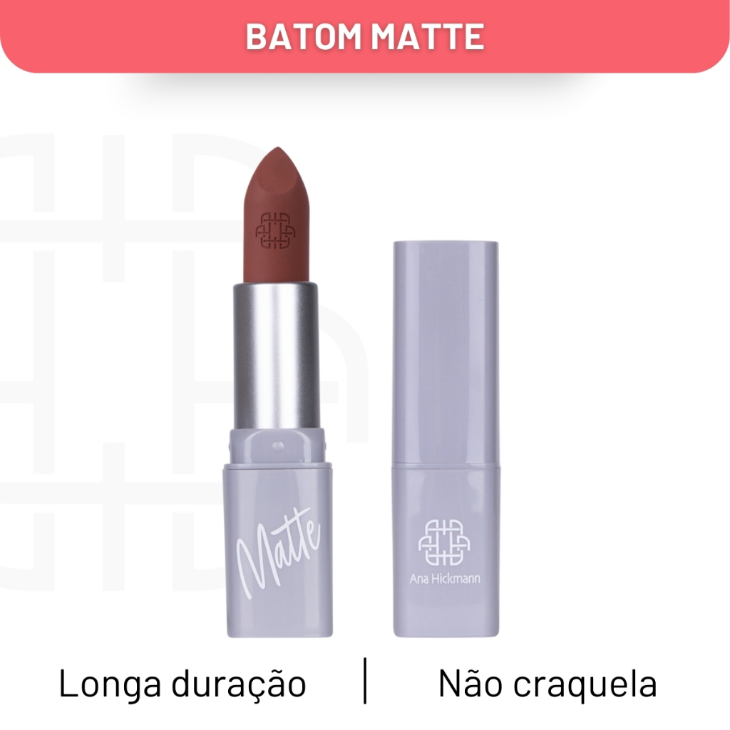 Batom matte de longa durabilidade e alta pigmentação. Fácil de aplicar, desliza bem sobre os lábios sem craquelar.