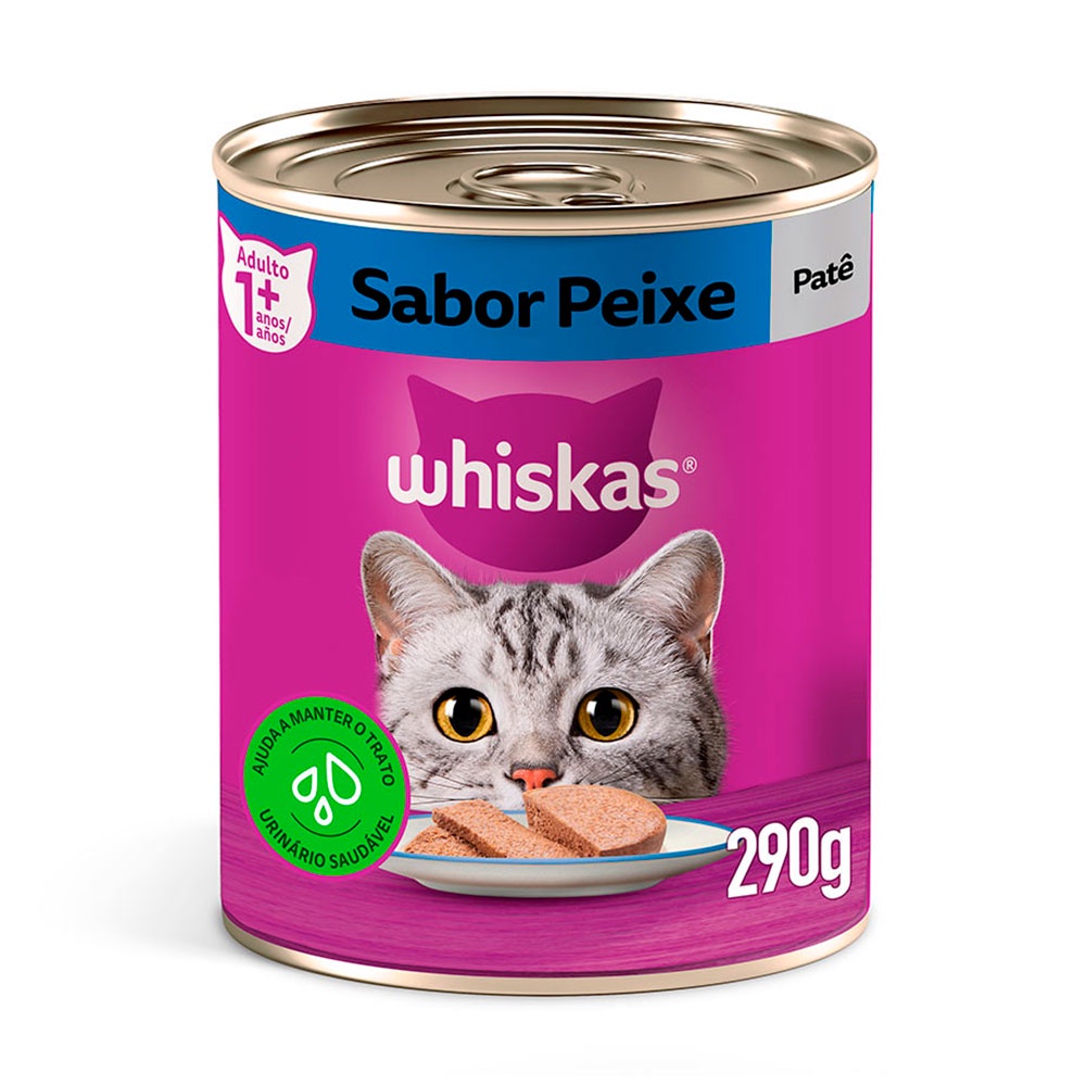 Ração Úmida Whiskas Lata Gatos Adultos Patê Peixe 290g - Indicado para gatos adultos; - Ingredientes naturais de alta qualidade, vitaminas e minerais; - Sem conservantes, sem corantes artificiais e sem aromatizantes artificiais; - Ajuda a manter a saúde do trato urinário. A Ração Úmida Whiskas Patê Peixe proporciona uma experiência culinária irresistível para o seu gato. Cozidos a vapor e sem aromas artificiais, esse patê de peixe são uma ode à pureza, oferecendo cuidados específicos para a saúde do trato urinário e garantindo fezes de alta qualidade.Com ingredientes de alta qualidade, uma fonte ideal de proteínas, vitaminas e sais minerais. Com fórmula balanceada para que o seu felino receba todos os nutrientes essenciais para uma vida ativa e saudável. IngredientesSardinha integral, miúdos de aves, água, minerais (tripolifosfato de sódio, cloreto de potássio, sulfato de cobre, óxido de manganês, iodato de cálcio, óxido de zinco, selenito de sódio, óxido de magnésio), vitaminas (D3, E, B1, B2, B6, B12, ácido pantotênico, niacina, ácido fólico, cloreto de colina), metionina, taurina, goma carragena, goma cássia, goma xantana, EDTA cálcio dissódico, dióxido de titânio, palatabilizante.