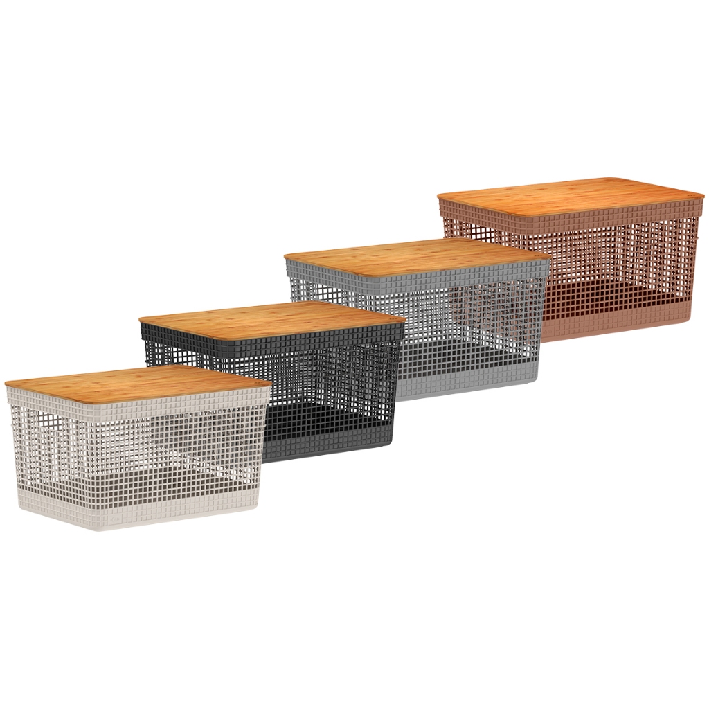 Cesto Organizador Grid 20L com Tampa de Bambu – Ou Organização com estilo e funcionalidade. O Cesto Organizador Grid 20L da marca Ou foi criado para quem valoriza ambientes organizados sem abrir mão do design. Com estrutura em polipropileno resistente e tampa em bambu natural, oferece um toque de elegância que transforma qualquer espaço. Seu formato compacto e empilhável é ideal para ambientes como lavanderias, closets, cozinhas e salas. Perfeito para decorar e manter tudo em ordem. Com capacidade de 20 litros, é ideal para armazenar itens diversos como roupas, acessórios, brinquedos ou materiais de escritório. Sua tampa em bambu proporciona um acabamento sofisticado, enquanto as laterais com aberturas garantem ventilação adequada e fácil manuseio. Cores neutras e acabamento fosco tornam o cesto uma peça versátil e decorativa. Praticidade no dia a dia. Leve e fácil de transportar, o Cesto Grid alia durabilidade e beleza com um design moderno e funcional. Pode ser empilhado com outros cestos da linha, otimizando o espaço e facilitando a organização da casa. Seu visual minimalista permite que ele se integre a diferentes estilos de decoração, do clássico ao contemporâneo. Especificações Marca: Ou Modelo: Cesto Grid 20L Material: Polipropileno (cesto) e bambu (tampa) Capacidade: 20 litros Medidas: 22,6 cm (A) x 29 cm (L) x 39 cm (C) Peso: 1,126 kg