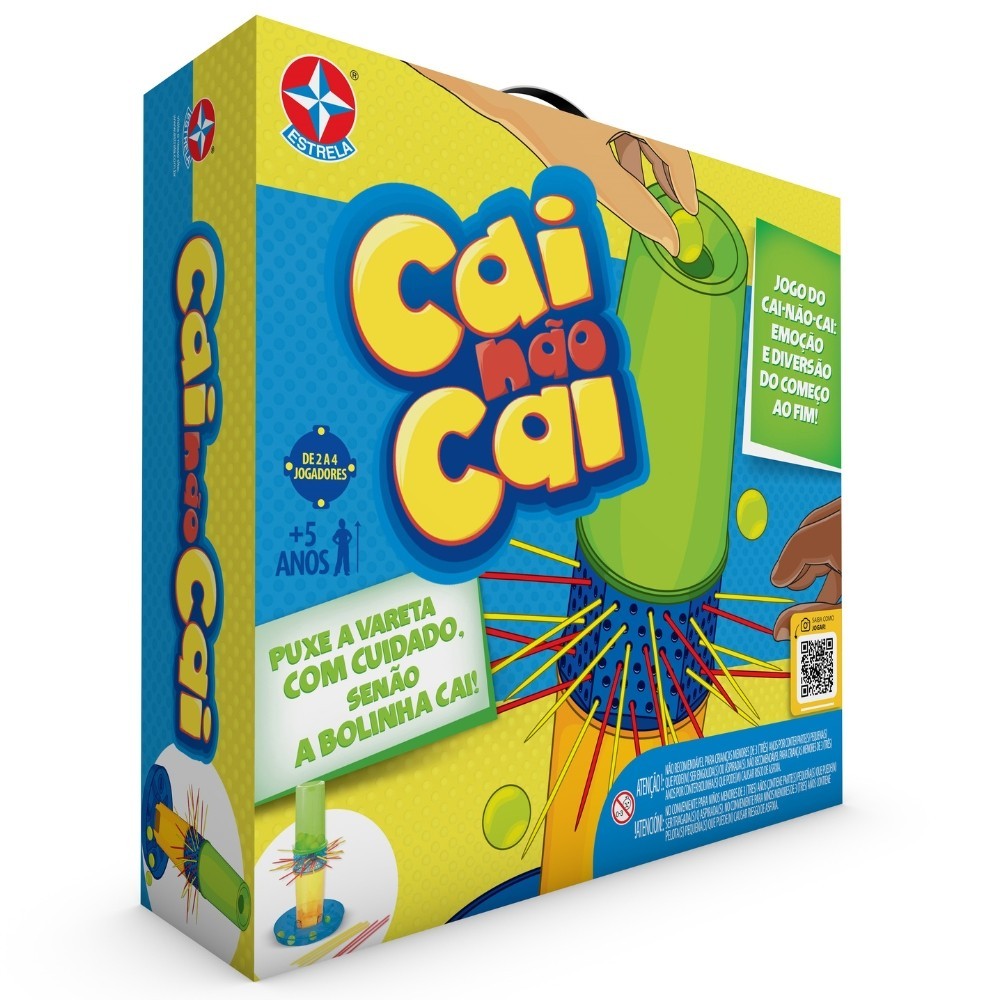 ***PRODUTO ESTRELA EM PORTUGUÊS ORIGINAL, OFICIAL, LACRADO E COM NOTA FISCAL*** JOGO CAI NÃO CAI ESTRELA PEGA VARETAS BOLINHAS BRINQUEDO INFANTIL ESTRATÉGIA EQUILÍBRIO FAMÍLIA Teste seu senso de equilíbrio e agilidade tirando as varetas sem deixar as bolinhas caírem. Um jogo de ação que vai testar suas habilidades. Cada jogador puxa uma vareta por vez, mas tomando cuidado para não deixar as bolinhas caírem. Puxe a vareta com cuidado, senão a bolinha cai! Jogo do cai não cai: emoção e diversão do começo ao fim! "DICA AOS ADULTOS: LEIA AS INSTRUÇÕES A SEGUIR COM ATENÇÃO E - AO MESMO TEMPO - VÁ JOGANDO COM A CRIANÇA." OBA! VAI COMEÇAR O JOGO! 1. Gire o tubo até que a portinha na parte de baixo fique virada para divisão que você escolheu. Tome muito cuidado para as bolinhas não se mexerem. 2. Escolha uma vareta qualquer e puxe-a para fora do tubo, com cuidado. Mas, atenção: se você encostar em outra vareta, aí é essa que você vai ter que tirar do tubo. Tome cuidado para não deixar cair nenhuma bolinha na sua divisão, pois cada bolinha que cai é menos chance de você ganhar a partida. Vá deixando as bolinhas que caírem na sua divisão para contar no fim do jogo. DICA: Para não deixar cair nenhuma bolinha, vale até segurar o tubo com uma das mãos. Depois de tirar a vareta, deixe-a fora do jogo. 3. Agora, é a vez do próximo jogador girar o tubo até a portinha ficar em frente da divisão que ele escolheu. Ele deve fazer o mesmo que o jogador anterior fez. 4. FIM DO JOGO! A disputa termina quando todas as bolinhas tiverem caído, mesmo que ainda tenha alguma vareta no tubo. QUEM GANHA O JOGO: Ganha o jogo quem tiver o menor número de bolinhas no final da partida. Prepare o jogo: 1. Coloque o tubo plástico na base, como mostram as figuras 1 e 2. 2. Depois, encaixe todas as varetas nos furinhos, atravessando o tubo. (figura 3) 3. Agora, coloque as bolinhas pela abertura de cima do tubo. (figura 4) 4. Escolha uma das quatro divisões numeradas da base. Cada jogador escolhe uma divisão. 5. O jogador mais novo começa o jogo, depois é a vez do jogador à esquerda. Informações Técnicas: - Material: Plástico - Contém: 01 tubo plástico, 01 base plástica com 04 divisões numeradas, 01 saquinho com bolinhas e 32 varetas plásticas. - EAN: 7896027524093 - Produto certificado INMETRO REGISTRO: 001 798/2020 - Peso 588g - JOGO - 5+ ANOS - De 2 a 4 jogadores - ESTRELA - Garantia: Contra defeitos de fabricação - Prazo de Validade: Indeterminado Obs: O produto e as cores podem variar do aprensentado nas fotos da embalagem. ATENÇÃO! NÃO RECOMENDÁVEL PARA CRIANÇAS MENORES DE 3 (TRÊS) ANOS POR PODER GERAR PARTE(S) PEQUENA(S) QUE PODE(M) SER ENGOLIDA(S) OU ASPIRADA(S). --------------------------------------------------- SEJA MUITO BEM VINDO(A) A LOJA DE BRINQUEDOS DO CANAL 40 POR QUÊ COMPRAR NA LOJA DE BRINQUEDOS DO CANAL 40? *Enviamos seu pedido sempre no mesmo dia ou no máximo no próximo dia útil dependendo do horário da sua compra! *Produtos lacrados, originais e oficiais da mais alta qualidade; *Experiência única de compra (incluindo a experiência olfativa - você sentirá nosso cheiro); *Todos os nossos produtos estão à pronta entrega em nosso estoque físico aqui no Brasil; *Seu pedido será enviado com segurança e agilidade; IMPORTANTE: Tenha tranquilidade de comprar com quem está disposto a te oferecer o melhor atendimento, caso tenha algum problema após a compra, conte com nossa equipe de pós venda para solucioná-lo! A LOJA DE BRINQUEDOS DO CANAL 40 tem a missão de garantir a satisfação total do seu cliente, tanto nos produtos quanto no atendimento. Assim estabelecemos uma relação única de confiança! Não encontrou o que procurava? Clique na foto da nossa logo para entrar em nossa loja e ver todos os nossos produtos OU nos mande uma mensagem diretamente aqui pelo chat. SERÁ UM PRAZER ATENDÊ-LO(A)! --------------------------------------------------- MUITO PRAZER, ME CHAMO FELIPE CAMARGO, SOU DONO, CEO E CRIADOR DE CONTEÚDO DO CANAL 40. DESDE JÁ, DEIXO AQUI O MEU MUITO OBRIGADO!!! CANAL 40 - LOJA DE BRINQUEDOS LTDA DEIXE SUA CRIANÇA INTERIOR FELIZ E APROVEITE!