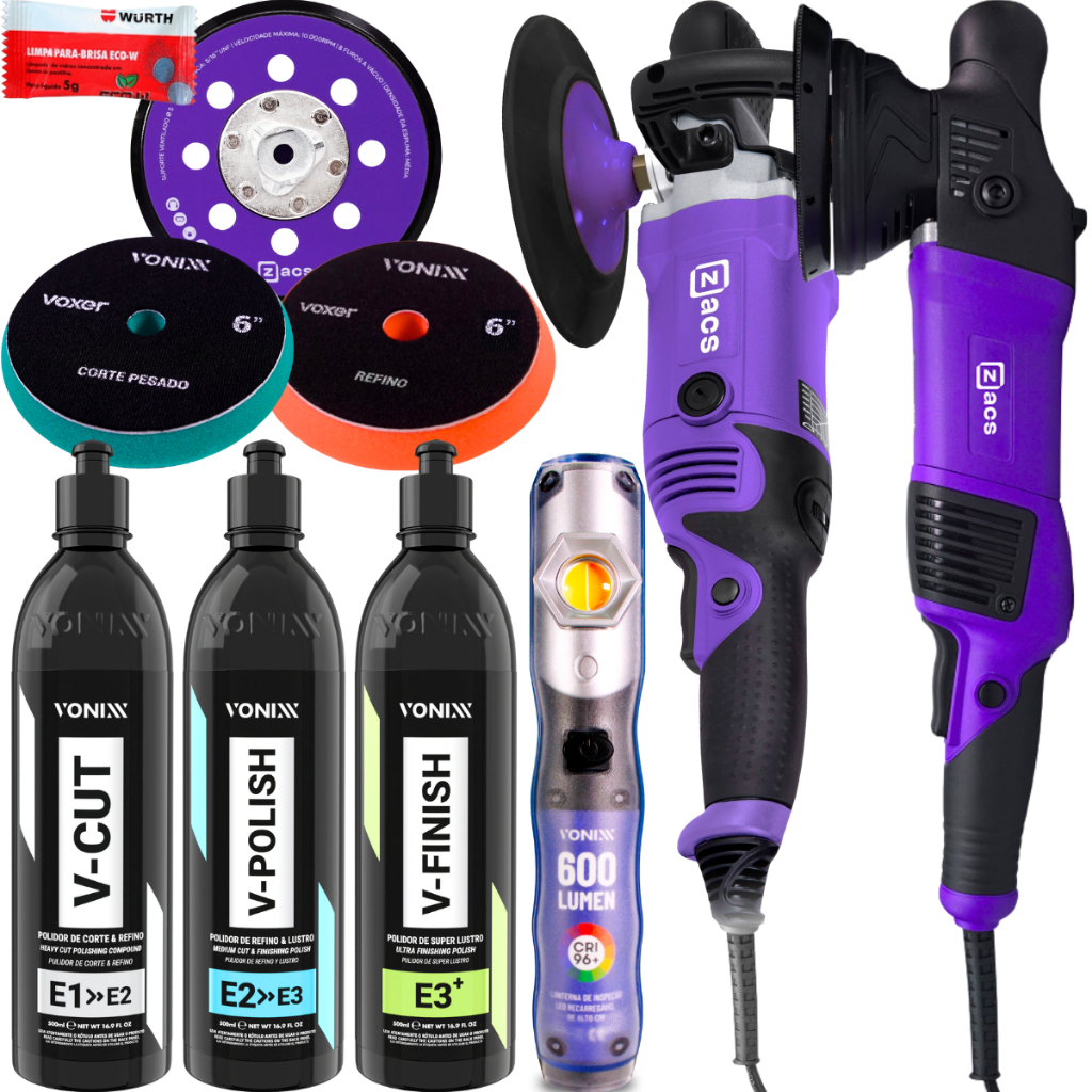 A Politriz Roto-Orbital Zacs possui potência de 900W e alto torque. Indicada para realização de polimento de pinturas em geral com deslocamento de 15mm. Proporciona praticidade na mudança de velocidade em 6 níveis. É leve e permite um trabalho com maior segurança. Possui ajuste de velocidade prático e rápido. Slot para escova de carvão de fácil substituição.