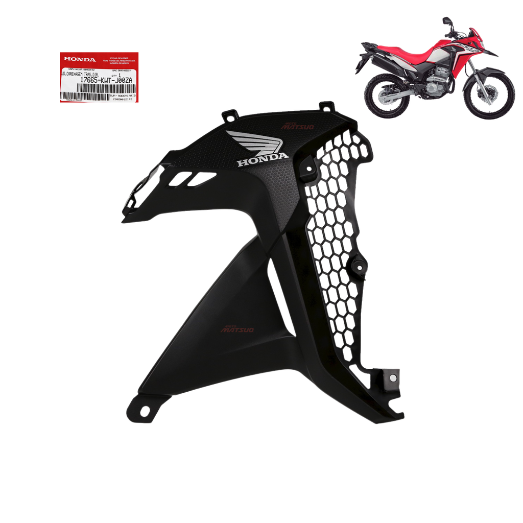 Carenagem Complemento Interna Direita Original Honda Código Honda: 17665-KWT-J00ZA Aplicação: XRE 300 RALLY: 2020 a 2021 Descrição do Produto: A Carenagem Complemento Interna Direita é um elemento essencial para a sua XRE 300 Rally, proporcionando proteção e um acabamento perfeito. Este produto é 100% original, garantindo a qualidade e a durabilidade que só a Honda pode oferecer. Características: Nossos produtos são novos e genuínos HONDA. A instalação deve ser feita apenas por um profissional de sua confiança. Informações Adicionais: Todas as vendas acompanham nota fiscal. Temos todos os produtos anunciados disponíveis pronta entrega. Devoluções são aceitas somente na embalagem original e sem sinais de uso. Não realizamos trocas, apenas devoluções, conforme nossa política. Garantia de 3 meses contra defeitos de fabricação. Aproveite o frete ao adicionar mais produtos ao seu carrinho! Atendimento: Temos uma equipe de profissionais de vendas à sua disposição para esclarecer todas as suas dúvidas, de segunda a sexta-feira, das 08:00 às 18:00. MOTO MATSUO A sua concessionária Honda, pioneira na distribuição de peças originais Honda desde 1973. Aguardamos a sua compra! Atenciosamente, Moto Matsuo Concessionária Honda