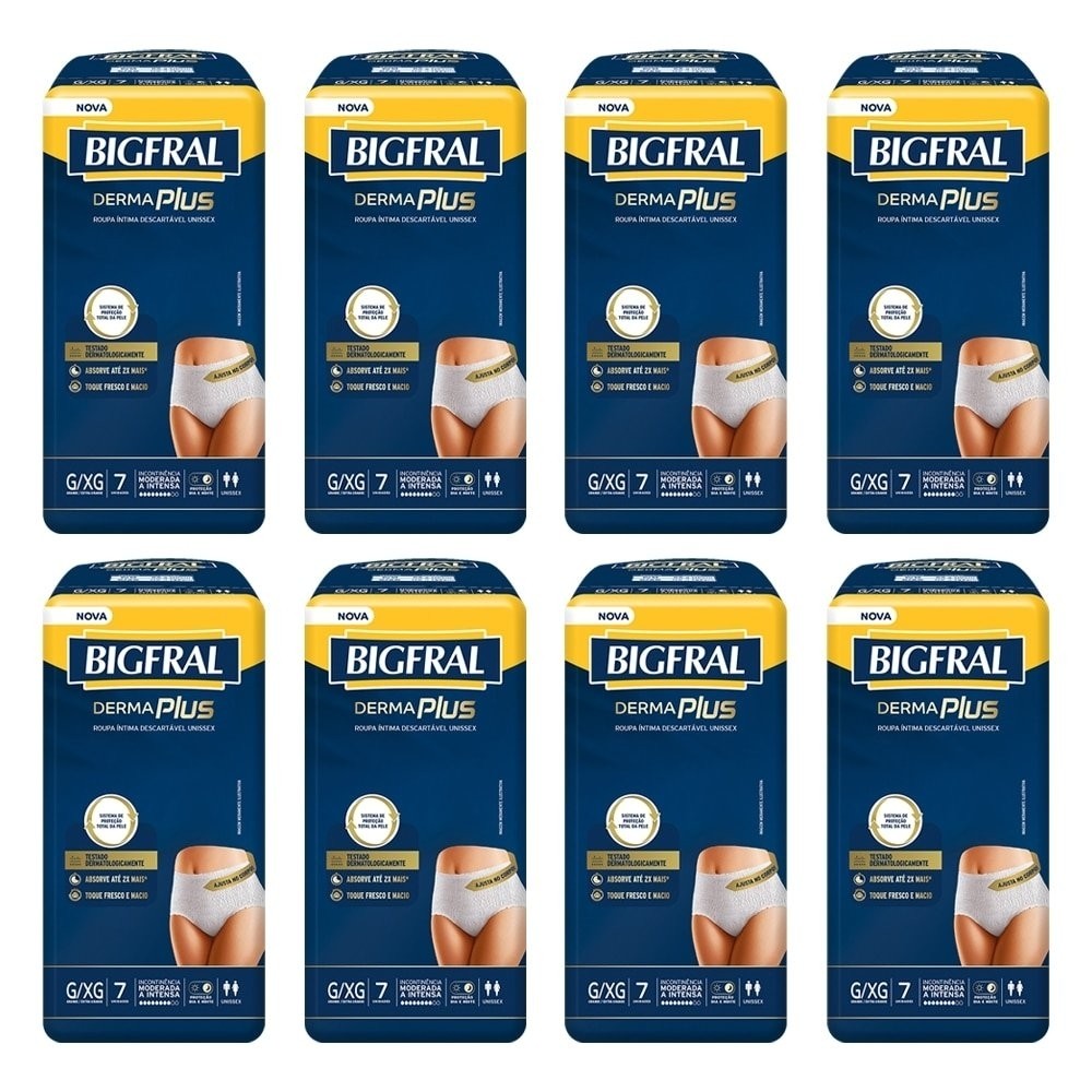 Roupa Íntima Bigfral Derma Plus Pants Premium Tamanho G/XG - 8 Pacotes com 7 Fraldas - Total 56 Tiras - 16% OFF | Health