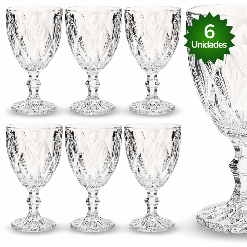 Conjunto com 6 Taças Diamante Transparente - 330ml Adicione um toque de sofisticação e elegância à sua mesa com o Conjunto de Taças Diamante . Perfeitas para servir água, vinho ou outras bebidas, essas taças são ideais para momentos especiais com familiares e amigos, proporcionando brindes mais graciosos e marcantes. Destaques do Produto: Design sofisticado: O modelo Diamante eleva a elegância de qualquer ocasião. Material Resistente: Produzido em vidro de alta qualidade, simples de limpar e com acabamento impecável. Capacidade Generosa: Cada taça comporta até 330ml, ideal para diversas bebidas. Informações Técnicas: Modelo: Taça Diamante Cor: Transparente Material: Vidro Capacidade: 330ml Altura: 16,5cm Peso Unitário: 359g Itens Inclusos: 6 Taças Vantagens: - Ideal para uso diário ou graças especiais. - Sofisticação e qualidade em um único conjunto. Transforme sua mesa em um espaço de requinte e charme com o Conjunto de Taças Diamante . Garanta já o seu!