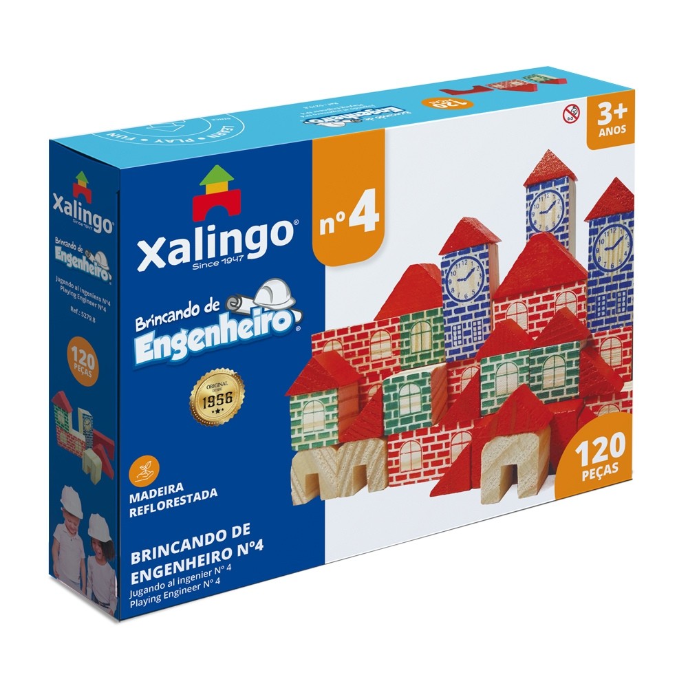 Jogo Brincando De Engenheiro N4, Xalingo, 120 Peças Em Madeira O Jogo Brincando de Engenheiro N4 da Xalingo é um brinquedo educativo e divertido que estimula a criatividade e o desenvolvimento das crianças. Com 120 peças de madeira reflorestada, ele permite a construção de diversas estruturas, como casas, pontes e castelos, incentivando a imaginação e a coordenação motora. Diferenciais: Material seguro: Peças de madeira reflorestada com tinta atóxica, garantindo a segurança das crianças. Estímulo à criatividade: As diferentes formas e tamanhos das peças permitem a criação de inúmeras construções, estimulando a imaginação e a criatividade. Desenvolvimento de habilidades: Auxilia no desenvolvimento do raciocínio lógico, da coordenação motora fina, da percepção espacial e da capacidade de resolver problemas. Durabilidade: As peças de madeira são resistentes e duráveis, garantindo horas de diversão. Marca confiável: Xalingo, sinônimo de qualidade e segurança em brinquedos. Mais sobre o Produto: É composto por 120 peças de madeira em diferentes formatos e tamanhos, permitindo a construção de diversas estruturas. As crianças podem seguir os modelos sugeridos ou criar suas próprias construções, explorando as possibilidades e desenvolvendo suas habilidades. Dicas de Uso: Comece com construções simples: Apresente as peças e incentive a criança a criar estruturas básicas, como torres e muros. Explore as diferentes formas: Incentive a criança a experimentar as diferentes formas e tamanhos das peças, descobrindo como elas se encaixam e se equilibram. Organização: Após a brincadeira, incentive a criança a guardar as peças na caixa, organizando-as por forma e tamanho. Ficha Técnica: Marca: Xalingo Modelo: Brincando de Engenheiro N4 Peças: 120 Material: Madeira Reflorestada Idade recomendada: A partir de 3 anos Garantia: 3 Meses