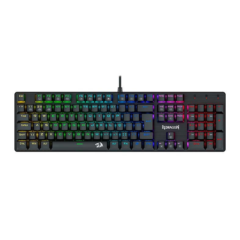 TECLADO MECÂNICO GAMER REDRAGON SINDRI O Teclado Mecânico Gamer Redragon Sindri K671 combina a robustez dos switches mecânicos marrons com uma iluminação em arco-íris vibrante, proporcionando uma experiência de jogo envolvente e precisa. Seu design compacto e ergonômico o torna ideal para jogadores que valorizam desempenho e estilo. ELEGÂNCIA PERSONALIZÁVEL Full-size com iluminação rainbow e keycaps extras vermelhas, para adicionar elegância ao seu setup. Proporcionando uma experiência imersiva e funcional com iluminação vibrante e personalizável. ILUMINAÇÃO RAINBOW RGB Com leds de cores distintas usa leds individuais em cores diferentes para criar um efeito de arco-íris vibrante e colorido. Ideal para decoração e ambientes animados! TECNOLOGIA ANTI-GHOSTING O teclado garante precisão em cada toque, mesmo quando múltiplas teclas são pressionadas ao mesmo tempo. Isso é essencial para jogos intensos que exigem rapidez e controle total. TECLAS DOUBLE SHOT Os keycaps fabricados por meio do processo de double shot injection são altamente valorizados por sua durabilidade e qualidade. Nesse processo, duas camadas de plástico são injetadas separadamente, o que garante que as legendas dos keycaps não se desgastem com o tempo, pois as letras são parte do próprio material do keycap, e não apenas uma impressão superficial. Marca: Redragon Modelo: K671 Características: - Teclado Full Size Redragon Sindri. - Iluminação Rainbow. - Keycaps double shot injection de maior qualidade para maior longevidade. - Layout ABNT2 feito especialmente para o mercado brasileiro. Switches: Redragon Brown Acionamento: Mecânico Hot Swap: Sim Formato: Full Size Conectividade: USB Layout: ABNT2 Software: Não Altura Ajustável: Sim Iluminação: Rainbow Fixa Rollover: N-Key Rollover Comprimento do cabo: 1.5m aproximadamente Keycaps: ABS Doubleshot Sobre a Pichau Informática Com mais de 18 anos de atuação no mercado nacional de tecnologia, a Pichau se destaca por seu compromisso com a inovação, qualidade e a satisfação do cliente. Referência em performance e confiabilidade, a empresa segue evoluindo para entregar produtos de excelência em diversas áreas, incluindo o esporte.