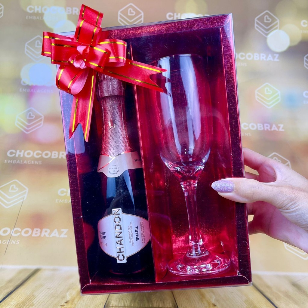 05 ~ 25 Caixa VERMELHA Textura com visor p/ Mini Champanhe e Taça ASSK | Stationery