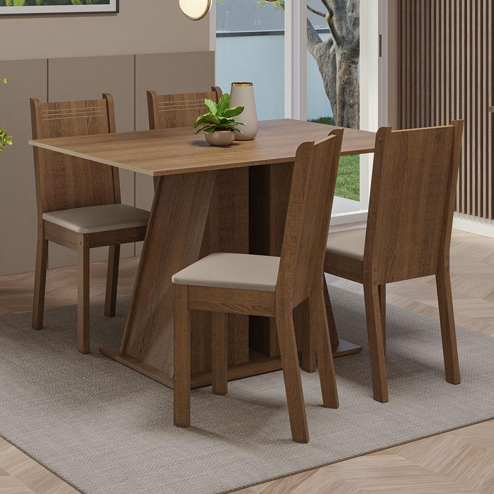 O Conjunto de Mesa e Cadeiras Marilyn , da Madesa, é a solução perfeita para quem busca um ambiente de jantar moderno e elegante. A mesa possui tampo retangular em MDP, com ótimo espaço para quatro pessoas. O pé é no formato pedestal, que agrega beleza e conforto. As cadeiras são produzidas em MDF e MDP, com assento estofado em material sintético bege, que é fácil de limpar e combina com os mais variados estilos de decoração. Para completar, o acabamento do móvel é em amadeirado Rustic, feito em Pintura Poliéster com 7 camadas que protegem o móvel dos efeitos do álcool da água e do calor. Renove agora sua sala de jantar ou cozinha com toda a qualidade do Conjunto de Jantar Marilyn da Madesa. Medidas da cadeira: - 89 cm de altura - 37 cm de largura - 44 cm de profundidade Medidas da mesa: - 78 cm de altura - 120 cm de largura - 90 cm de profundidade Itens inclusos: - Uma (1) Mesa com base pedestal e tampo de MDP - Quatro (4) Cadeiras com assento estofado Código do produto: MDJA0401785ZBE Obs.: - A Madesa não disponibiliza serviço de montagem - Imagens meramente ilustrativas. O conjunto é composto pela mesa e quatro cadeiras. - O produto segue com manual e todas as ferragens necessárias para a instalação 1 – O produto vem montado? Se não, vocês realizam a montagem? R.: A Madesa não disponibiliza serviço de montagem. Todos os produtos seguem com manual de instalação e as ferragens necessárias. Alguns produtos possuem vídeo explicando o passo a passo da montagem. 2 – Vocês possuem loja física? Posso retirar meu produto em mãos? R.: Não possuímos loja física, apenas loja virtual. Confira as opções de envio ao colocar o seu CEP. 3 – Qual é o valor do envio? Posso pagar separadamente? R.: O valor do envio é calculado com base no peso e volume do produto, e no CEP de destino. Você pode calcular o valor e prazo de entrega no simulador. 4 – A Madesa entrega em todo Brasil? Como é feita a entrega? R.: Sim, entregamos no Brasil inteiro através de transportadoras parceiras. A Madesa possui compromisso com a sustentabilidade. Geramos energia limpa em nossa própria usina, priorizamos fornecedores responsáveis e utilizamos plástico reciclado em nossa produção. Além disso, reinserimos sobras no ciclo de reciclagem e investimos no desenvolvimento de nossos colaboradores e da comunidade. Garantia: Este produto conta com 1 ano de garantia total, sendo 3 meses de garantia legal e 9 meses de garantia contratual. A garantia cobre exclusivamente defeitos de fabricação e vícios ocultos. Não estão cobertos: problemas decorrentes de montagem incorreta, uso inadequado, exposição à umidade, calor ou luz solar direta, modificações no produto ou desgaste natural.