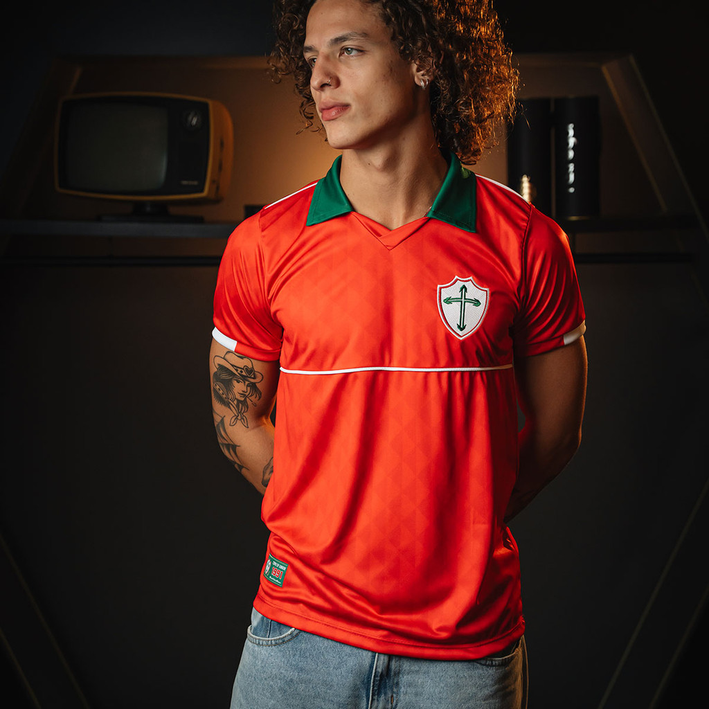 Reviva a história do futebol com a clássica camisa da Seleção Portuguesa de 1991. Este modelo retrô traz de volta o design marcante que marcou época, com as cores tradicionais de Portugal em destaque. Ideal para torcedores apaixonados e colecionadores, a camisa combina estilo vintage e conforto, sendo perfeita para o dia a dia ou ocasiões especiais._x000D_ _x000D_ __x000D_ _x000D_ _x000D_ Características:_x000D_ - 100% Poliéster_x000D_ - Indicado para uso Casual_x000D_ - Todos os produtos a pronta entrega_x000D_ - Garantia: Contra defeito de fabricação_x000D_ _x000D_ _x000D_ Medidas Aproximadas: Largura x Altura_x000D_ - P (BR): 51 x 68_x000D_ - M (BR): 53 x 70_x000D_ - G (BR): 55 x 72_x000D_ - GG (BR): 57 x 74