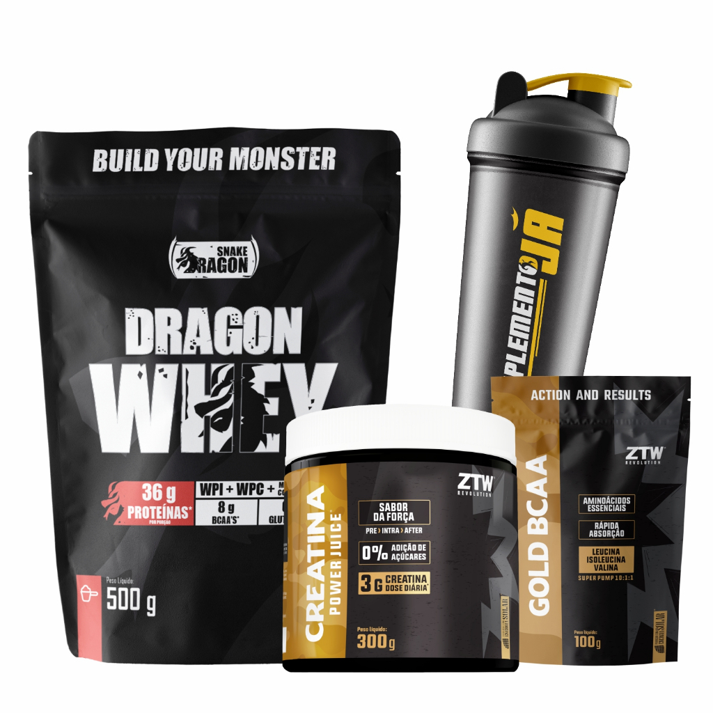 Dragon Whey, 500g - Snake Dragon: O Poder que Você Precisa para Conquistar Músculos Incríveis Máxima Concentração de Proteínas: Com Dragon Whey, cada grama conta. Prepare-se para ganhos musculares impressionantes e um aproveitamento ótimo dos seus treinos. - Explosão de Aminoácidos Essenciais: Seus músculos vão agradecer! Cada dose oferece uma combinação potente de aminoácidos que estimula o crescimento e a resistência muscular. - Ideal para sua Dieta: Baixo em carboidratos e gorduras, perfeito para quem busca excelentes resultados sem comprometer a dieta. - Sem Glúten, Para Todos: A inclusão é importante. Nosso produto se adapta a diferentes necessidades alimentares. Recuperação Rápida, Treinos Intensos: Esqueça a fadiga. Com a fórmula avançada do Dragon Whey, sua recuperação será mais rápida, permitindo treinos mais frequentes e intensos. ________________________________________ CREATINA POWER JUICE ZTW: A REVOLUÇÃO NO SEU TREINO! O QUE É: A Creatina Power Juice da ZTW Revolution é a inovação que revolucionará seus treinos. Essa incrível bebida foi desenvolvida para proporcionar resultados reais e duradouros, otimizando o desempenho durante os exercícios. Com a Creatina Power Juice, você aumentará força, resistência e intensidade, maximizando seus resultados de maneira conveniente e deliciosa. COMO TOMAR: Ingerir 10g (2 dosadores ou 2 colheres de chá) deste produto em 200 ml de água ou bebida de sua preferência em uma coqueteleira, mexa no mínimo, por 5 segundos e está pronto! Consumir 2 vezes ao dia, podendo ser um antes dos exercícios e outra após. ________________________________________ GOLD BCAA Potencialize seu desempenho atlético com o Gold BCAA da ZTW, o suplemento essencial para quem deseja ampliar os ganhos musculares e intensificar cada treino. Sua fórmula avançada oferece BCAAs que não apenas aceleram a síntese proteica, mas também combatem a fadiga e otimizam a recuperação pós-treino. A inclusão de Maltodextrina potencializa a energia, aumentando sua resistência e performance. Rápido na absorção e fácil na digestão, Gold BCAA é prático para consumo diário e transportar, assegurando que você nunca perca a chance de melhorar. Experimente Gold BCAA hoje e eleve seu treino a um novo patamar, com resultados que falam por si!