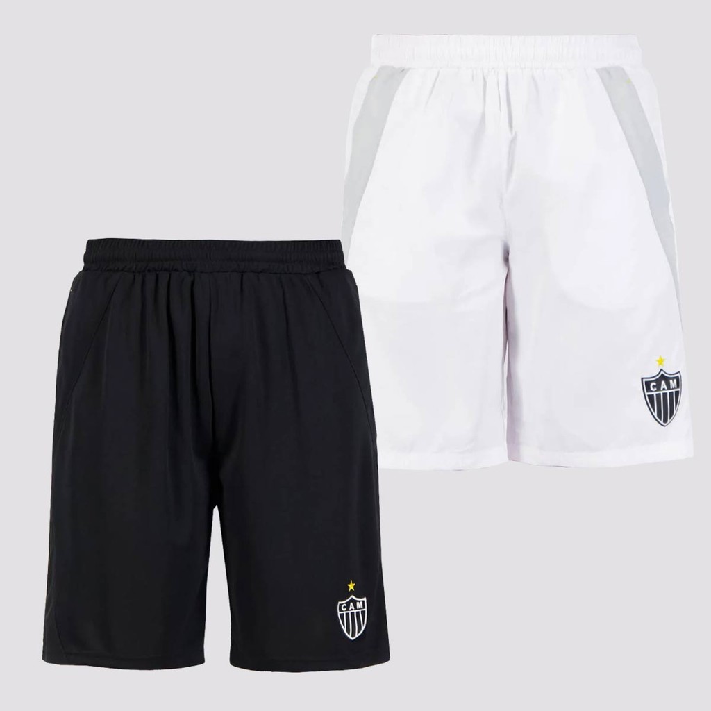Bermuda Branca Composição corpo: 100% Poliéster Composição forro: 100% Poliéster Ajuste: Elástico e cordão no cós Bolsos: Dois frontais e um traseiro Cor predominante: Branca Clube: Atlético Mineiro Indicado para: Treino Origem: Importado Gênero: Masculino Escudo: Bordado Dimensões aproximadas (A x L): P: 52 x 35 cm M: 54 x 37 cm G: 56 x 39 cm GG: 58 x 41 cm EG: 60 x 43 cm Bermuda Preta Composição: 100% Poliéster Cor predominante: Preta Ajuste: Elástico e cordão Clube: Atlético Mineiro Bolsos: Dois frontais Indicado para: Casual Forro: Sim, em Mesh Gênero: Masculino Origem: Importada Escudo: Bordado Dimensões aproximadas (A x L): P: 51 x 36 cm M: 53 x 38 cm G: 55 x 40 cm GG: 57 x 42 cm EG: 59 x 44 cm