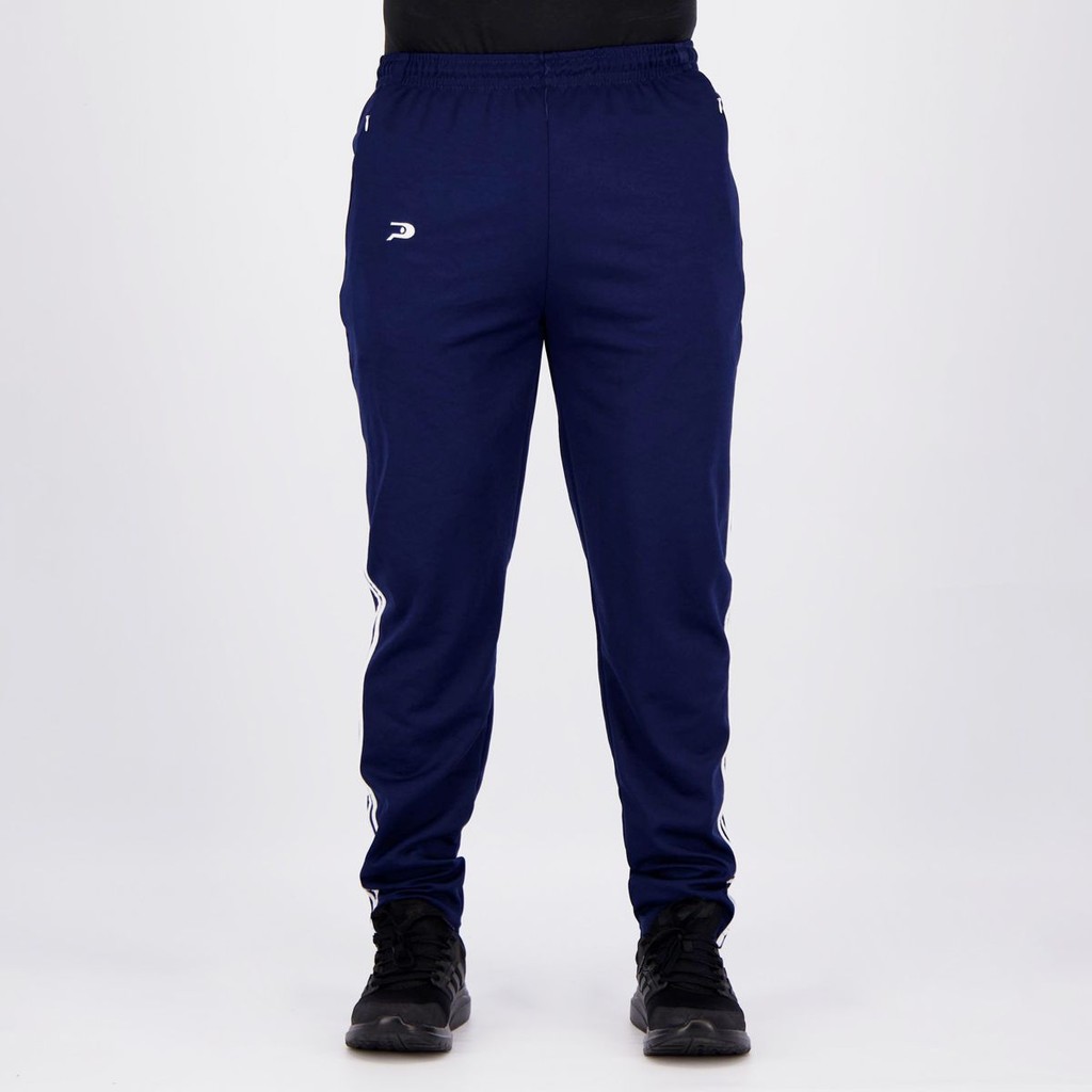 Composição: 100% Poliéster Bolsos: Dois, frontais e com zíper Cor predominante: Marinho Ajuste: Elástico e cordão Indicado para: Treino Gênero: Masculino Origem: Nacional Logo: Bordado Dimensões aproximadas (A x L): P: 101 x 34 cm M: 103 x 36 cm G: 105 x 38 cm GG: 107 x 40 cm. EG: 109 x 42 cm