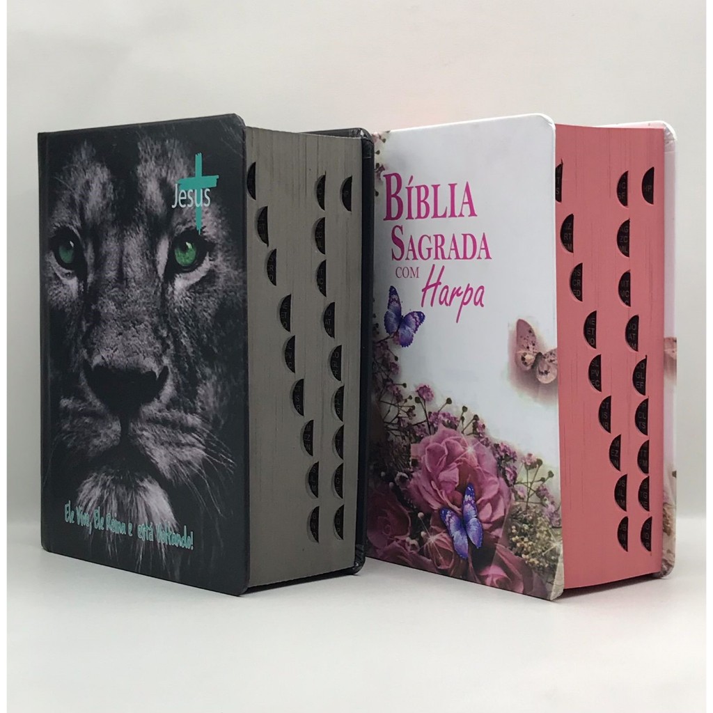 Kit 2 Bíblias Sagrada Com Harpa Tamanho Médio Palavra de Deus em Azul e Palavra de Jesus em vermelho