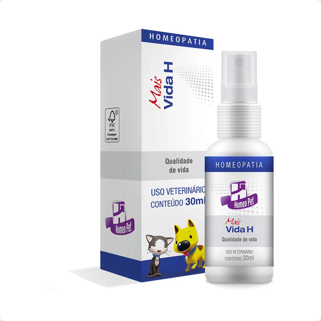 Mais Vida H Homeopatia Homeo Pet Real H - 30ml - Estimula a imunidade e o sistema cardiorrenal; - Melhora o metabolismo em geral; - Qualidade de vida para animais idosos. * Consulte sempre o médico Veterinário de sua confiança para o uso apropriado deste medicamento. Leia a bula ou informações descritas na embalagem. Detalhes O Sistema de Terapia Real H Homeo Pet Mais Vida H - 30 mL é um produto para estimular o anabolismo e o desenvolvimento de cachorros e gatos em todas as fases da vida. Melhora a qualidade e prolonga a vida dos animais idosos. Estimula a assimilação adequada dos alimentos e o desenvolvimento do seu pet em todas as fases da vida. Dicas Especiais De uso oral. Coloque as doses indicadas na água de bebida ou sobre os alimentos (rações, leite, etc), borrifando o produto imediatamente antes de oferecer o alimento ao animal. Pode-se utilizar o produto diretamente na mucosa oral do animal, expor a parte interna da bochecha (mucosa bucal) e dirigir as borrifadas sobre ela, facilitando o contato direto do medicamento. Cães de pequeno porte 01 borrifada, 03 vezes ao dia. Cães de médio porte 02 borrifadas, 03 vezes ao dia. Cães de grande porte 03 borrifadas, 03 vezes ao dia. Gatos 01 borrifada, 01 vez ao dia. Armazenar o produto em temperatura ambiente, ao abrigo do sol e calor (fogão). Manter sempre afastado de fontes de radiações eletromagnéticas (rádio, telefone, microondas etc) bem como de produtos químicos (alvejantes, desinfetantes etc). Indicação: Cachorros, Gatos Porte/Raça: Raças Pequenas, Raças Médias, Raças Grandes Idade: Adultos Composição: Kali phosphoricum 7 CH...........16,66 mL Strophantus hispidus 6 CH.......16,66 mL Natrum muriaticum 7 CH.........16,66 mL Berberis vulgaris 6 CH..............16,66 mL Silicea terra 7 CH......................16,66 mL Artemisia abrotanum 12 CH....16,66 mL Véiculo (Q.S.P).........................100,0 mL Apresentação: 30 mL