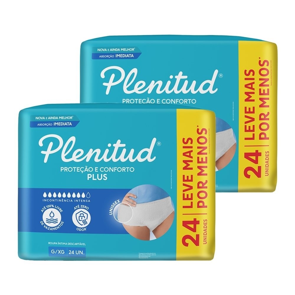 Características do produto: Marca: Plenitud Linha do Produto: Plus Tamanho: G/XG Especificações Gerais: Tipo: Descartável Medida do Quadril: 112 a 137cm Gênero: Unissex Linha do Produto: Plus Cintura mais elástica com toque de algodão Controle de Odores Capacidade de Absorção da Incontinência Urinária: Intensa, Severa Composição: Celulose, poliacrilato de sódio, polipropileno, polietileno, pegoterato, elásticos e adesivos termoplásticos Modo de Uso: Identifique a parte traseira, por meio da marcação no produto Sentado ou em pé, coloque as pernas nas aberturas e suba suavemente o produto, como se fosse sua roupa íntima Para retirar, rasgue o produto pela lateral e descarte-o no lixo Fornecedor: Plenitud