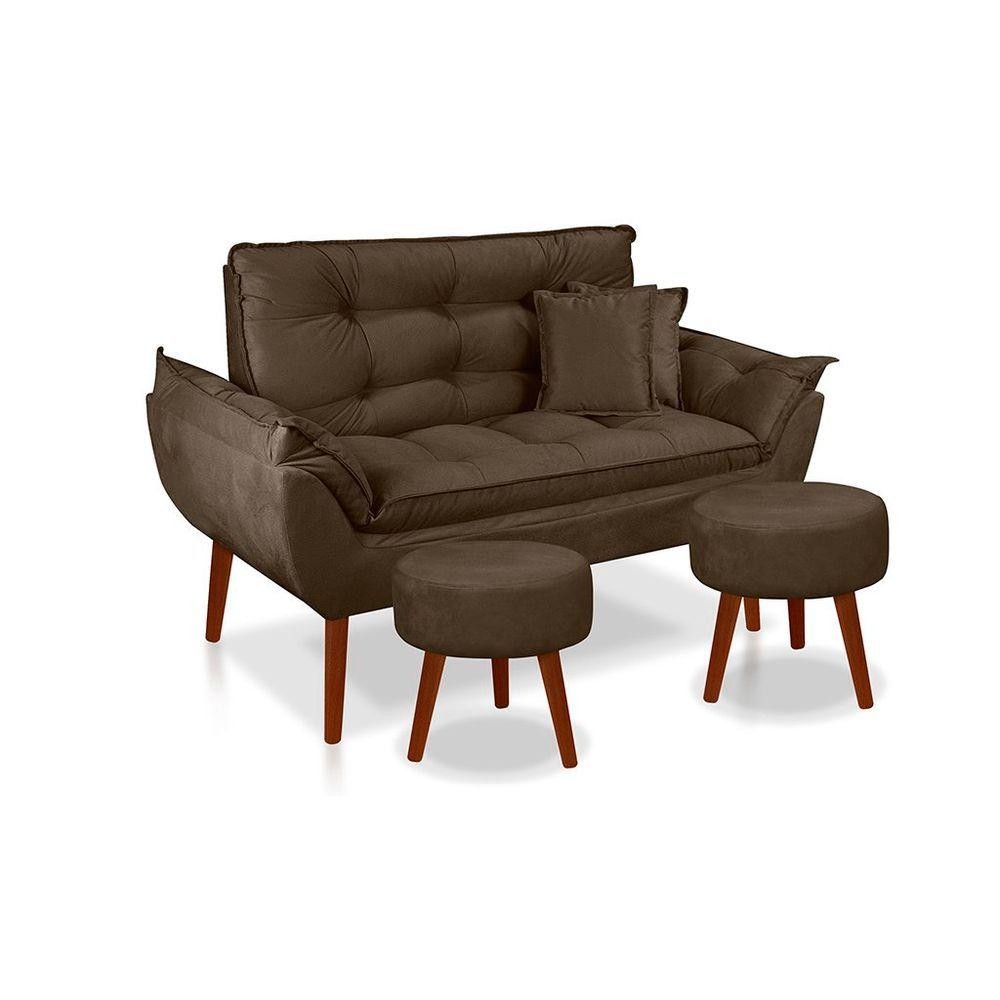 Kit C/ 01 Namoradeira Opala + 02 Puffs Redondo Danny + 02 Almofadas Suede Marrom