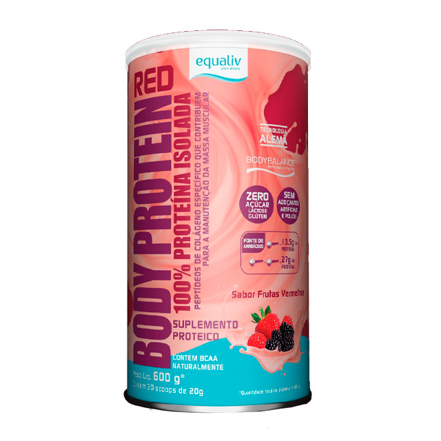 INFORMAÇÕES DE DESTAQUE Tecnologia alemã; Colágeno hidrolisado com certificação Bodybalance™; Contém BCAA; Fonte rica em aminoácidos; Zero lactose; Zero glúten; Sem adoçantes artificiais ou polióis; Zero açúcar; Sem conservantes. DESCRIÇÃO Body Protein da Equaliv é uma proteína de alta qualidade, desenvolvida com colágeno hidrolisado certificado Bodybalance™, ideal para promover a formação muscular. Diferente de proteínas à base de soro de leite, sua fórmula exclusiva é pensada para atender às necessidades de quem busca melhorar a performance física, aumentar a força muscular e otimizar os treinos. Com sabor neutro, Body Protein é versátil e pode ser incorporado a bebidas e refeições, sejam elas quentes ou frias. É uma alternativa prática e saudável para quem deseja manter ou ganhar massa magra. COMPOSIÇÃO Colágeno hidrolisado, morango, amora e framboesa em pó, aromatizantes naturais de baunilha e morango, espessante goma xantana, acidulante ácido cítrico, antiumectante dióxido de silício, edulcorantes naturais taumatina e glicosídeos de esteviol. Não contém glúten. SUGESTÃO DE USO Adicione 1 medida (20g) ou 2 medidas (40g) de Body Protein a cada 100ml de água ou bebida de sua preferência. Misture até completa dissolução. Para uma consistência mais cremosa, utilize menos líquido e bata com um mixer.