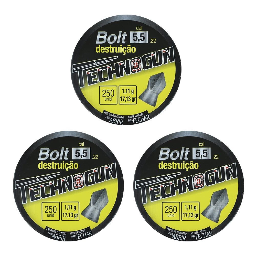 - 03 Latas de Chumbinho Technogun Bolt Destruição 17,13gr Calibre 5.5mm 250un. (cada)