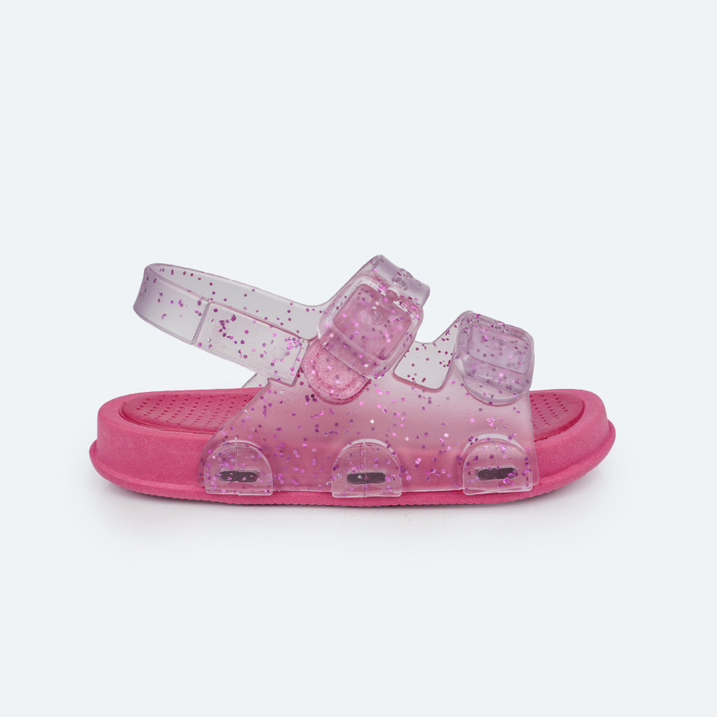 Sandália infantil feminina em plástico rosa chiclete maleável de PVC, com um cabedal exclusivo que imita fivelas emborrachadas, trazendo um toque lindo e divertido! Sandália infantil com muito glitter, do jeito que as meninas adoram. Sistema inovador de pipetas, que elimina a necessidade de cola e proporciona um acabamento impecável. Palmilha Air Tech permite a ventilação dos pés, enquanto o solado injetado em PVC oferece leveza, flexibilidade e conforto. O fechamento em velcro facilita o calce. Sandália é fácil de lavar e seca rapidamente. Papete feita com materiais 100% recicláveis e sem ftalatos, é uma escolha que cuida da saúde das meninas e do meio ambiente. Aposte!Sandália infantil feminina moderna e lúdica do jeito que as meninas amam! A sandália é prática e versátil, fica linda com vestido infantil, conjunto infantil feminino, e mais... Aproveite e veja roupa infantil feminina para um look completo clicando aqui!Clique aqui e fique por dentro das Novidades da Pampili!