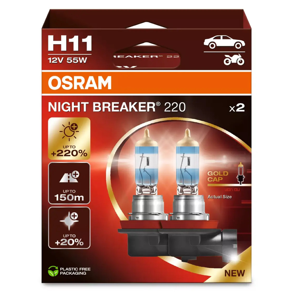 PAR DE LÂMPADAS OSRAM NIGHT BREAKER 220 H11 55W 12V