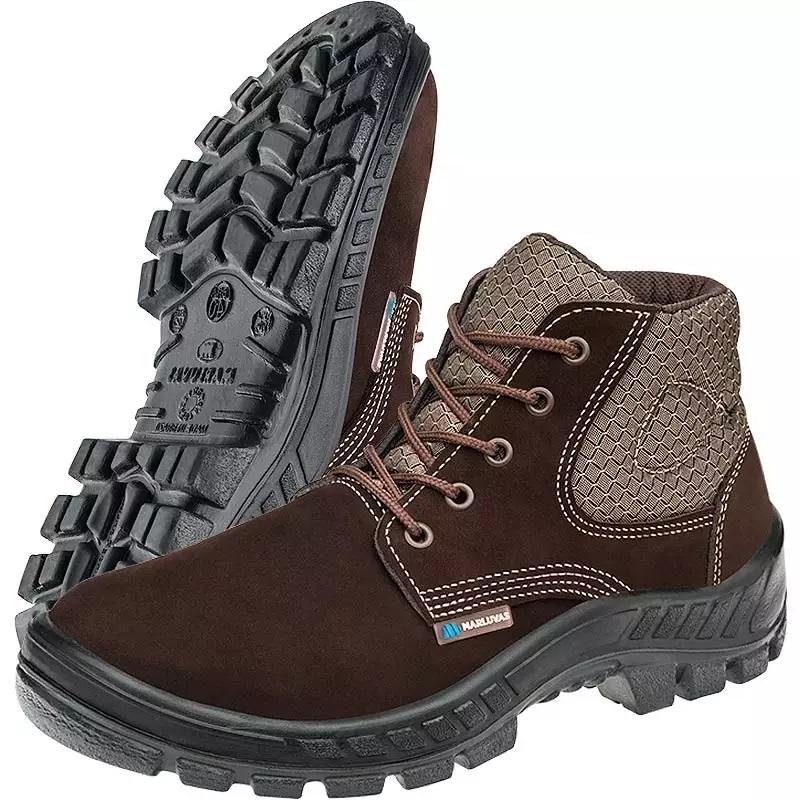 Botina de Segurança New Prime Café 50B26CB MARLUVAS Botina ocupacional com biqueira de plástico, colarinho acolchoado, confeccionada em couro, fechamento em cadarço, forração interna e solado bidensidade. DADOS TÉCNICOS: Modelo: 50B26 CB BP NUB. Biqueira de plástico (polipropileno). Cabedal nubuck. Colarinho acolchoado. Forração interna. Palmilha higiênica antibacteriana. Solado PU Bidensidade. Contraforte: Termoplástico 1,5mm. Linha: Poliamida nº 30. Requerimento: NBR ISO 20347:2015. Validade: 36 meses. Cor: Café. Peso por pé de calçado: 0,410kg. Altura do cano: 114mm (altura do cano é baseada no calçado de numeração 40, podendo ter uma variação de 3,33mm por número). Cabedal: Couro tipo nubuck com espessura de 18 a 20 linhas. Solado: Constituído de duas camadas de poliuretano (PU), injetado diretamente no cabedal, sendo a 1ª camada (entressola) mais macia e leve, com densidade de 0,4g/cm³ proporcionando maior conforto; e 2ª camada (sola) mais compacta com densidade de 1,0 g/cm³, resistente a abrasão com sistema antiderrapante constituído de ranhuras especiais de 3mm de altura e 6mm de largura e resistencia ao escorregamento em piso cerâmico e piso de aço (Nível SRC). Forro de Gáspea e Suador: Tecido não tecido em fibra curta com espessura mínima de 1,9mm. Biqueira: Plástico injetado em polipropileno, espessura de 1,5mm (este tipo de biqueira não tem as mesmas características de segurança do que a biqueira de aço). Palmilha de higiênica: Soft Comfort em EVA antifungo/antibactéria, composta de micropontos que proporcionam absorção e dessorção do suo. Palmilha de montagem: Costurada ao cabedal pelo sistema strobel, em poliéster agulhado e resinado com espessura de 2.0 mm. Certificado de Segurança: CA 45611. Ref: 700312 Marca: Marluvas Garantia: 3 meses *Imagens meramente ilustrativas.