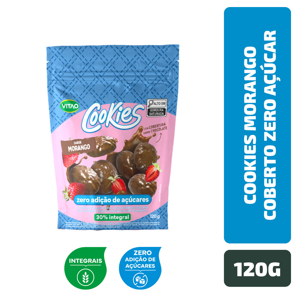 Cookies Morango Coberto Zero Açúcar Vitao 120 g - 30% OFF | Food & Beverages