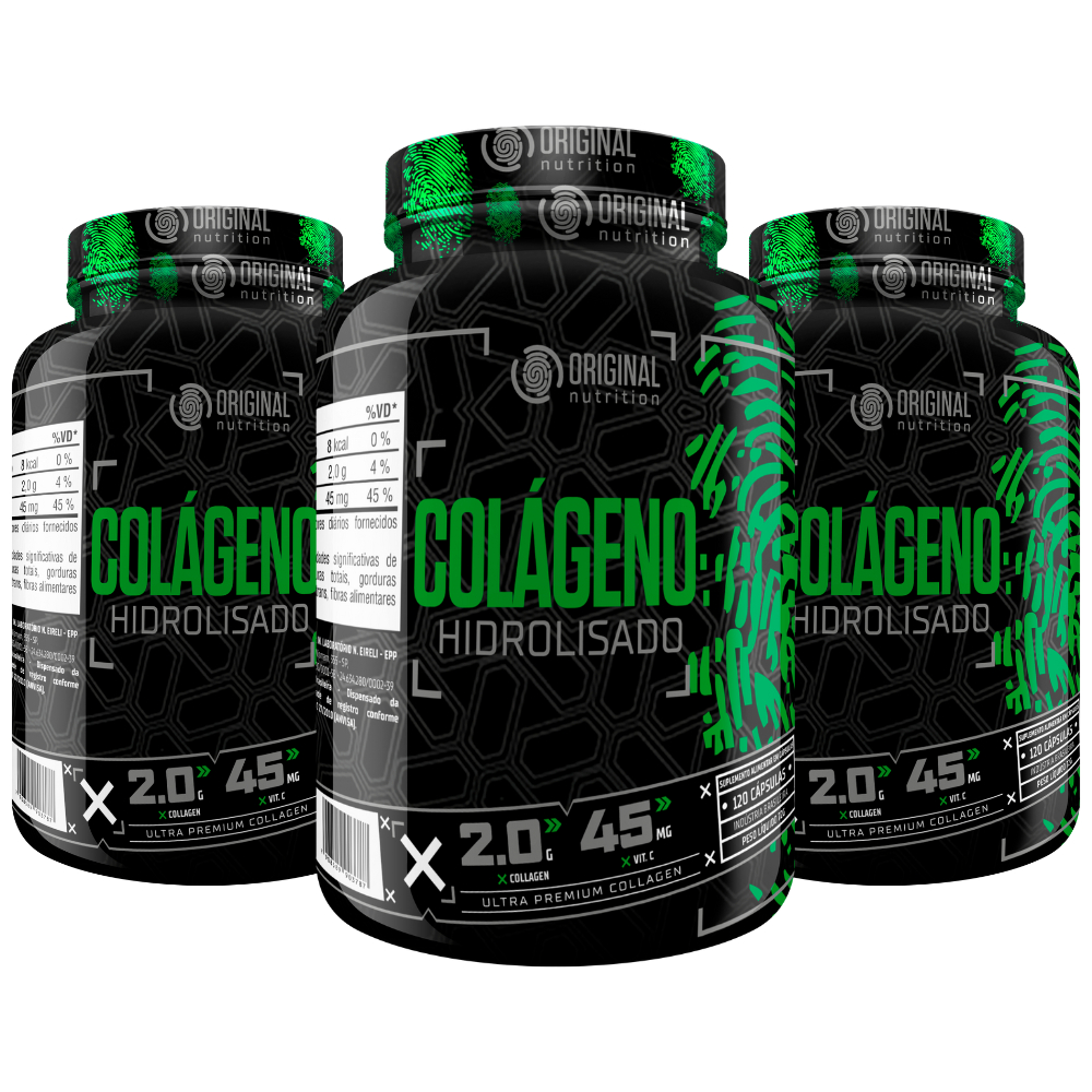 Colágeno (A disponibilidade do Colágeno em cápsulas ou em pó será sujeita a disponibilidade do estoque.) ON é um produto a base de Colágeno (A disponibilidade do Colágeno em cápsulas ou em pó será sujeita a disponibilidade do estoque.) Hidrolisado em cápsulas. Formulado com Peptiplus®, na forma de peptídeos bioativos de Colágeno (A disponibilidade do Colágeno em cápsulas ou em pó será sujeita a disponibilidade do estoque.). O Colágeno (A disponibilidade do Colágeno em cápsulas ou em pó será sujeita a disponibilidade do estoque.) ON também tem efeito regenerativo em ligamentos e articulações, e associado ao Betacaroteno e Vitamina C ajuda a neutralizar os radicais livres, auxilia no bronzeamento, previne rugas e retarda o envelhecimento da pele._x000D_ Embalagem disponível: 120 cápsulas_x000D_ BENEFÍCIOS Colágeno (A disponibilidade do Colágeno em cápsulas ou em pó será sujeita a disponibilidade do estoque.) HIDROLISADO ON_x000D_ Auxilia na manutenção da estrutura dos fios de cabelo e unhasAuxilia no combate a celulite e estriasEfeito regenerativo em ligamentos e articulaçõesAjuda a neutralizar os radicais livresAuxilia no bronzeamentoPrevine rugasRetarda o envelhecimento da pele_x000D_ _x000D_ COMO TOMAR Colágeno (A disponibilidade do Colágeno em cápsulas ou em pó será sujeita a disponibilidade do estoque.) ON_x000D_ Ingerir 4 cápsulas ao dia._x000D_ _x000D_ TABELA NUTRICIONAL NAS FOTOS_x000D_ _x000D_ ---------------------------------------------------------------------------------------------------------------------_x000D_ _x000D_ ITENS INCLUSOS: 3X Colágeno (A disponibilidade do Colágeno em cápsulas ou em pó será sujeita a disponibilidade do estoque.) HIDROLISADO 120 CÁPS - ORIGINAL NUTRITION (360 CÁPS) A coqueteleira pode variar de acordo com a disponibilidade de estoque. Imagens meramente ilustrativas
