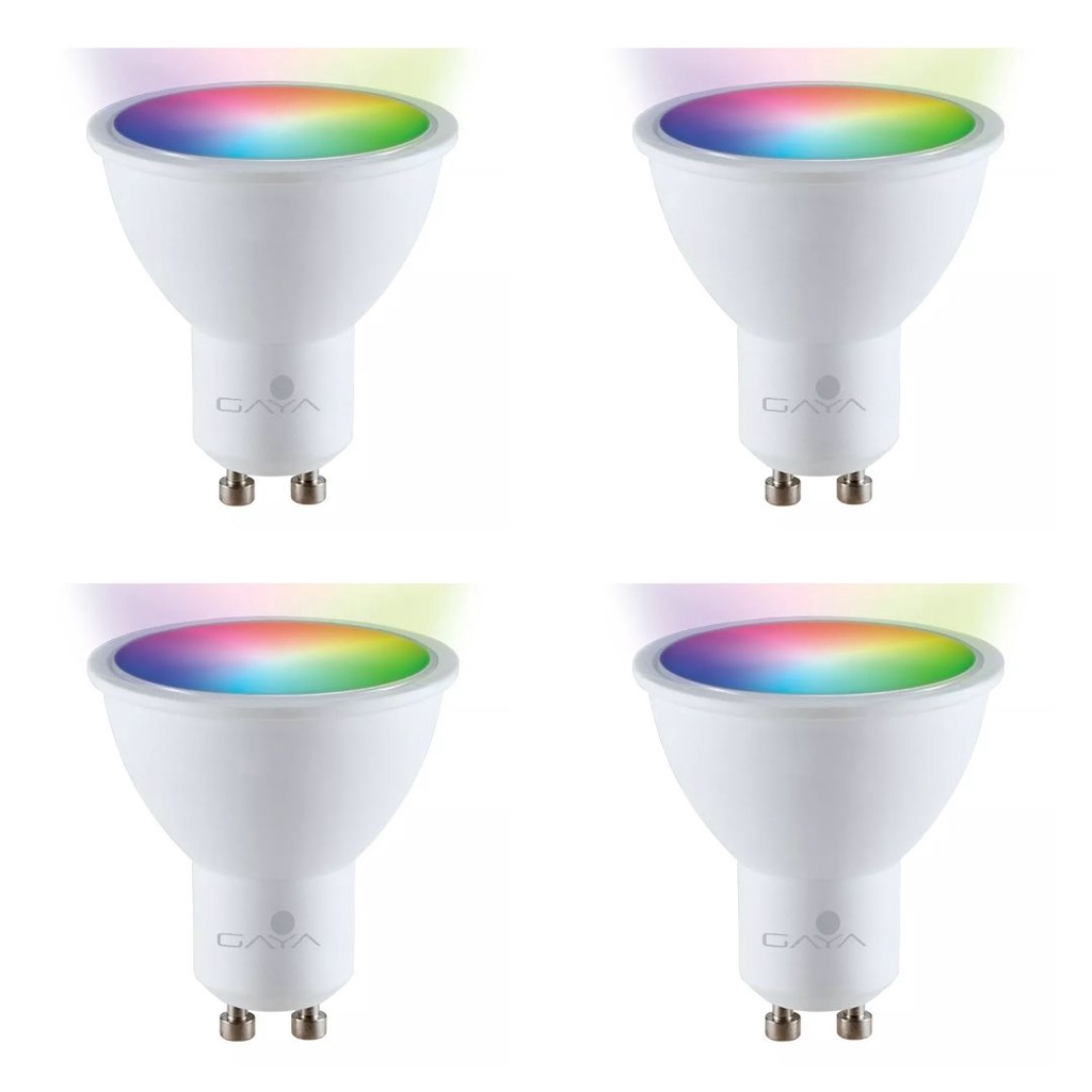 Kit 4 Lâmpada Dicroica Led Wifi Smart RGB 5w Gu10 Alexa Google Gaya Possuir uma boa iluminação nos espaços em que estamos influencia a maneira como nos sentimos, relaxamos, trabalhamos ou estudamos. É por isso que a lâmpada da Gaya LAMPADA DICROICA SMART RGB GAYA pode ser uma excelente opção se você quiser criar um ambiente agradável e funcional. Lâmpada inteligente Essa lâmpada, compatível com Wi-Fi, pode ser uma excelente opção se você deseja mudar os níveis de cor e brilho do produto em diferentes momentos do dia. É possível alterar a iluminação de acordo com o gosto do usuário e também automatizar a ativação e desativação dos aplicativos de telefone e de assistente virtual. Características gerais Marca: Gaya Modelo: LAMPADA DICROICA SMART RGB GAYA Tecnologia de iluminação: LED Voltagem: 110V/220V Cor da luz: RGB Modelo detalhado: LAMPADA DICROICA SMA Com certificação NOM: Não Fluxo luminoso: 500 lm Tipos de soquete: GU10 Forma: Dicroica Vida util: 20000 h É dimerizável: Sim Eficiência energética: A+++ Com Wi-Fi: Sim Assistentes virtuais compatíveis: Alexa Aplicações inteligentes compatíveis: Smart Life Com impacto positivo: Sim