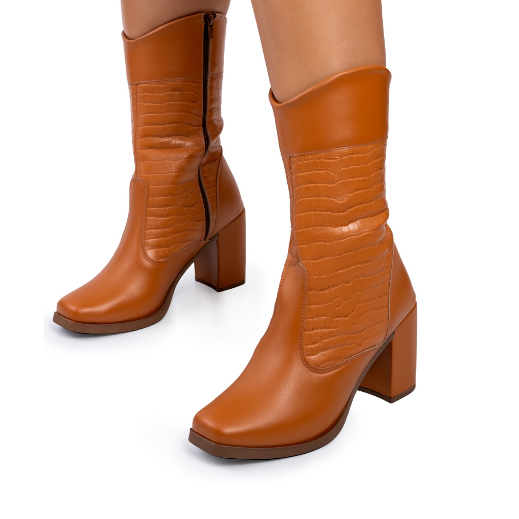 Descubra o charme refinado da nossa bota de salto com cano médio em Croco. Elegância e conforto se unem em cada passo, elevando seu estilo a novas alturas. Um toque de sofisticação que faz toda a diferença. ..:::.. ESPECIFICAÇÕES DO PRODUTO ..:::.. *Material Externo - Napa Soft Confort, Croco *Material Interno - Material Têxtil Super Confortável. *Solado - Emborrachado Anti-Derrapante, não faz barulho, não escorrega. *Altura do salto - 8,0 cm. *Altura do cano - 23,0 cm. *Palmilha - Ultra Confort com aplique da logo. Medida aproximada dos pés para cada numeração: Tamanho 34 --- 23,4 cm Tamanho 35 --- 24,0 cm Tamanho 36 --- 24,7 cm Tamanho 37 --- 25,2 cm Tamanho 38 --- 26,0 cm Tamanho 39 --- 26,2 cm Tamanho 40 --- 27,4 cm SOBRE A LUMISS: Desde 2018, brilha no coração da Lumiss a inovação para calçados femininos. Nascida como Amorelle, a marca é fruto do sonho de um visionário que sempre acreditou na possibilidade de fabricar calçados que surpreendessem o mercado, tanto pela variedade quanto por seus preços acessíveis. Com muito trabalho em família, essa ideia foi levada adiante, fortalecendo uma marca que hoje é referência nacional em calçados femininos, com presença marcante nos marketplaces e mais de dois milhões de pares já entregues em todo o Brasil. Comprometida com cada cliente, a Lumiss oferece as maiores tendências do mundo da moda a partir de materiais que garantem conforto, qualidade, sofisticação e estilo aos pés da mulher brasileira, encantando até mesmo os perfis mais exigentes. Além disso, a empresa se preocupa em oferecer a melhor experiência de compra, com total segurança e praticidade. Lumiss é mais que uma marca. É uma ideia que chegou para mostrar que todas as mulheres podem brilhar e ser ainda mais lindas e confiantes com calçados que as valorizam em todos os aspectos.