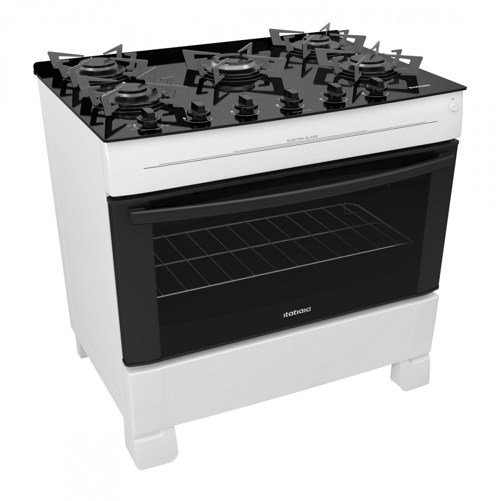Contando com uma mesa de vidro temperado 6mm e trempes individuai feitas de chapa de aço, o Fogão 5 Bocas à Gás Itatiaia Electra Glass, garante facilidade para a limpeza de seu produto após o uso. Possui um queimador grande, ideal para preparos de alimentos que necessitam de uma agilidade maior ou mesmo de um cozimento mais rápido. O fogão sai de fábrica convertido para ser utilizado em gás GLP, mas pode ser convertido para GN nas Redes de Serviço Autorizadas Itatiaia. Característica técnicas: Controle integrado na mesa Acendimento automático Trempes individuais, feitas em chapa de aço Classificação energética: A 1 prateleira fixa Forno com acabamento limpa fácil e revestimento fundente a pó Forno com capacidade de 88,5 L 5 queimadores, sendo 1 queimador grande central e com acabamento esmaltado Dimensões do produto: Altura: 87,6 cm Largura: 76,8 cm Profundidade: 60,5 cm Peso: 29,9 kg