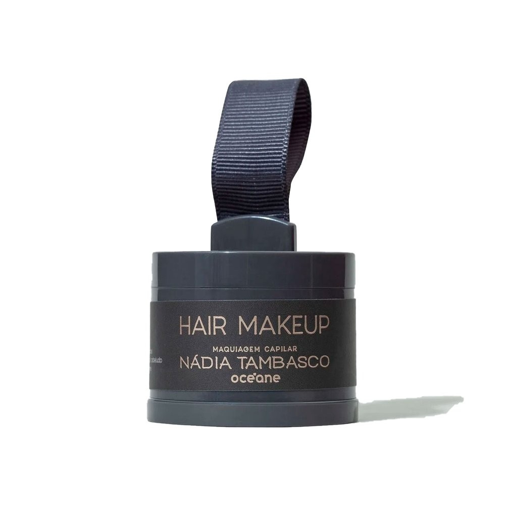 Maquiagem Capilar Océane by Nádia Tambasco Hair Makeup Preto Maquiagem capilar castanho escuro, da linha Nádia Tambasco by Océane, a Hair Makeup é uma solução temporária, muito prática, para disfarçar a raiz branca ou mesmo cobrir falhas nos seus cabelos. A maquiagem capilar dá uma sensação de volume aos cabelos mais ralos, além de ajudar a corrigir a linha frontal do cabelo. Além disso, sua fórmula é resistente à água e ao suor, fazendo com que seu efeito permaneça durante o dia inteiro. Prática de aplicar, ela acompanha uma esponja que auxilia na aplicação e ajuda a cobrir bem, proporcionando um look mais natural. De fácil remoção, basta lavar o cabelo com o seu shampoo regular. Quais são os diferenciais da maquiagem capilar Nádia Tambasco by Océane? Com a maquiagem capilar Nádia Tambasco by Océane, você pode disfarçar falhas e raiz branca, deixando os seus cabelos com a sensação de volume. Fácil de esfumar, ela vem em uma embalagem prática e compacta. Disfarça falhas e raiz branca Maquiagem para os cabelos desenvolvida em parceria com nossa embaixadora, a maquiadora Nádia Tambasco, a Hair Makeup é super prática. Ela ajuda a disfarçar a raiz branca, cobre falhas e dá uma sensação de volume aos cabelos mais ralos. Além de ajudar a corrigir a linha frontal do seu cabelo. Resistente a água e suor A fórmula da maquiagem capilar Nádia Tambasco by Océane é resistente à água e ao suor, podendo ter a durabilidade do dia inteiro, até a próxima lavagem. A proposta deste produto é entregar praticidade, mantendo a liberdade de escolha e essa beleza super descomplicada que tanto amamos. Assim, você é livre para pintar (ou não) o seu cabelo, no dia que quiser, do jeito que quiser. Tonalidade Com textura leve, em pó, a Hair Make Up garante uma naturalidade ao aplicar o produto. Para a escolha da cor ideal para o seu cabelo, é necessário fazer a comparação com a numeração das tinturas/coloração de cabelos. A Hair Make Up Castanho Escuro, corresponde aos tons de 5 a 6.