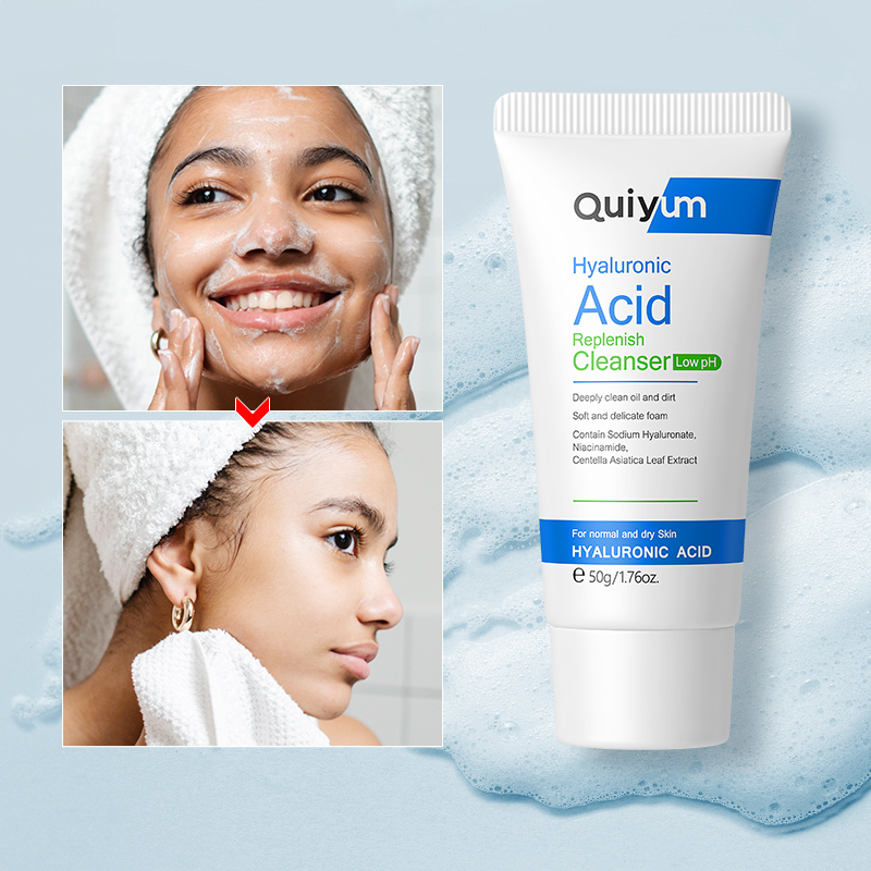 Pele Lisa de Limpeza Hialurônica QUIYUM Ácido Hialurônico Replenish Limpador Hidratante Clareador Limpeza Sujeira Limpeza Lisa 50g Informações básicas do produto Rede: 50g Vida útil da prateleira de 5 anos Extrato DE FOLHA DE SÓDIO Destaques do ano: Destaques de destaques: ☆Vida útil da Prateleira: 5 anos ☆Pele normal e seca ☆Óleo e sujeira profundamente limpos ☆Destaques do mesmo: Destaques Ph baixo ✔Contendo Hialuronato de Sódio, Limpador de Ácido Hialurônico QUIYUM possui espuma delicada e pode limpar profundamente os poros e sujeira, remover óleo e hidratar a pele. ✔Extrato de Folha de Niacinamida e Centella Asiatica, cicatriza a pele seca e desconforto, deixando a pele limpa e suave. Uso: Uso: Pegue uma quantidade adequada do limpador na palma da mão, espuma-o com água e massageie suavemente o rosto molhado e pescoço por um minuto e depois lave com água. Cuidados com os cuidados: 1.A pele sensível à pele sensível deve ser testada atrás da orelha antes de usar. Efeitos: 2.Mantenha-o em local fresco e fora do alcance de crianças.