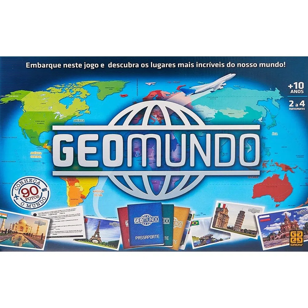 Jogo Geomundo É possível conhecer os cantos mais incríveis do mundo de um jeito simples e super divertido! Jogue Geomundo, um jogo de tabuleiro que contém diversos territórios do mundo e te ajuda a aprender algo novo sobre eles! Como jogar Geomundo? Para brincar com esse jogo de geografia infantil, você precisa contar de 2 a 4 participantes a partir dos 10 anos de idade! Depois, pegue uma carta e tente descobrir onde aquele determinado lugar está. Caso você acerte, poderá responder uma pergunta relacionada à geografia ou à cultura do local que está sendo apresentado na carta. Acertando mais essa etapa, você ganha essa carta em definitivo para você e soma um ponto com o seu “carimbo” de passaporte. Assim, além de se divertir, você também pode aprender novas informações sobre as cidades, monumentos e países que são parte da jornada de 90 fotos do Geomundo! Todas as regras do jogo Geomundo estão incluídas junto com o manual do jogo. Basta encontrar suas companhias, seguir as regras e partir para a diversão! Como funciona o jogo Geomundo? Código do Produto: 03446 Especificações Técnicas Faixa Etária : A partir de 10 anos Componentes : 1 tabuleiro, 1 baralho com 90 cartas, 1 dado, 4 cartelas passaporte e 1 manual de instruções Tamanho da Imagem : N/A Dimensões da embalagem : 37,0 x 27,0 x 5,5 cm Precisa de baterias ou Pilhas : N/A Participantes : 2 A 4 Garantia contra defeitos de fabricação (meses) : 3 Código de Barras : 7908010134469 Certificação Inmetro : * CE-BRI/ICEPEX-N 01264-25 - NM300-2004 OCP 0046 Outras Informações : Não recomendável para menores de 3 anos por conter partes pequenas.