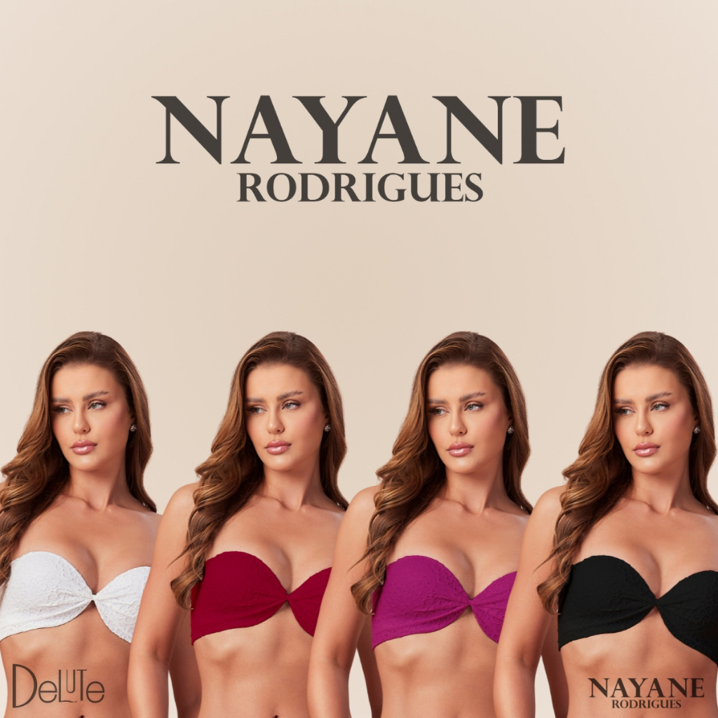 Sutiã Com Bojo e Renda Alta Sustentação Confortável Nayane Rodrigues Ref . 49 Sutiã tomara que caia possui bojo e renda, além de ser conhecido como bustiê por não possuir alças se tornando ideal para usar com blusinhas, vestidos ou roupas decotadas ou sem alças, deixando o look ainda mais charmoso e você mais confortável e segura durante o uso, sutiã nayane e conhecido pelo seu conforto e alta sustentação. Além disso, essa modelagem tem a lateral média que valoriza a silhueta e garante firmeza da peça ao corpo, possuindo até 3 tipos de regulagens para se adequar a sua necessidades. Características: - Modelo tomara que caia - Decote à mostra - Alta sustentação - Possui renda - Com bojo Tamanhos: S: P - 40 M: M - 42 L: G - 44 XL: GG - 46 XXL: EG - 48 Composição: Tecido -Poliamida 90% -Elastano 10% Forro do bojo Poliéster 100% Forro e Renda Poliamida 79% Elastano 21% Cores disponíveis: - Preto - Branco - Cereja - Flor