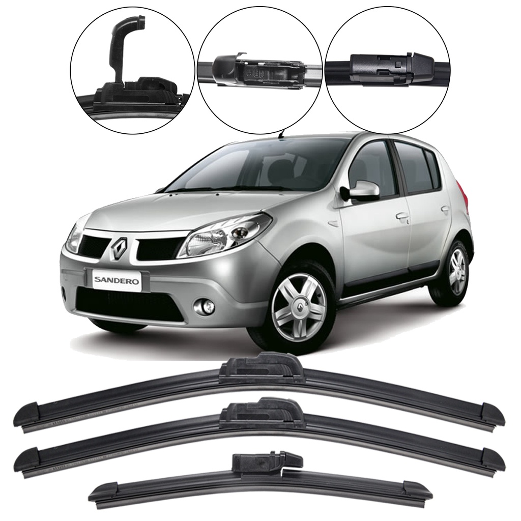 Jogo com 3 Palhetas para Limpador de parabrisa dianteiro e traseiro - Compatível como o Renault Sandero 2007 2008 2009 2010 2011 2012 2013 2014