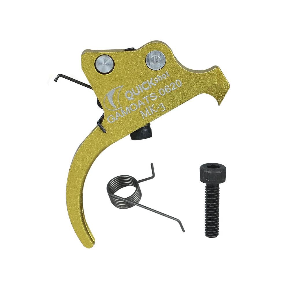 Produto de uso exclusivo em práticas esportivas. O uso do produto exige treinamento e equilíbrio emocional. Deverá ser guardado em lugar seguro e fora do alcance de terceiros. Os produtos aqui listados servem apenas para uso recreativo, ou seja ***NÃO*** letal. Essa é uma Lâmina de gatilho ajustável em até dois estágios. Essa função permite ao atirador ajustar o peso apliacado durante o curso do gatilho, fazendo com que ele seja mais fácil de manusear e também melhore o desempenho na prática. Confeccionado em alumínio na cor dourada, deixa sua Carabina de Pressão mais estilosa e pode ser facilmente substituído sem adaptações mais complexas. Compatibilidade: Carabinas de Pressão Gamo com gatilho ATS (gatilho de plástico). Especificações Técnicas: - Marca: Quickshot - Material: Alumínio - Cor: Dourado - Produto 100% nacional - Referência: LGA.GAM03.01 - Ajustável em até 02 estágios - Espessura x comprimento: 6mm x 5,2cm - Peso total: 8 gramas Itens Inclusos: - 01 Lâmina do Gatilho Ajustável Quickshot Dourado Carabinas Gamo ATS - 01 Chave Allen INFORMAÇÃO: Os equipamentos, peças e acessórios aqui listados são de uso exclusivo em armas de pressão (gás comprimido ou mola), airsoft, paintball, esferas plásticas (BBS) e estão em conformidade com a legislação brasileira de USO PERMITIDO "É permitido o uso de armas de pressão por ação de gás comprimido ou por ação de mola, com calibre igual ou inferior a seis milímetros (6mm ou 6.0mm), e das que lançam esferas de plástico com tinta, como os lançadores de paintball." Conforme parágrafo único do Art. 11 do DECRETO Nº 11.615, DE 21 DE JULHO DE 2023. A venda desses itens é feita somente para maiores de 18 anos mediante a comprovação de maior idade. Atenção: O envio de Armas de pressão e Airsoft é realizado somente por transportadora. Caso tenham dúvidas entrar em contato.