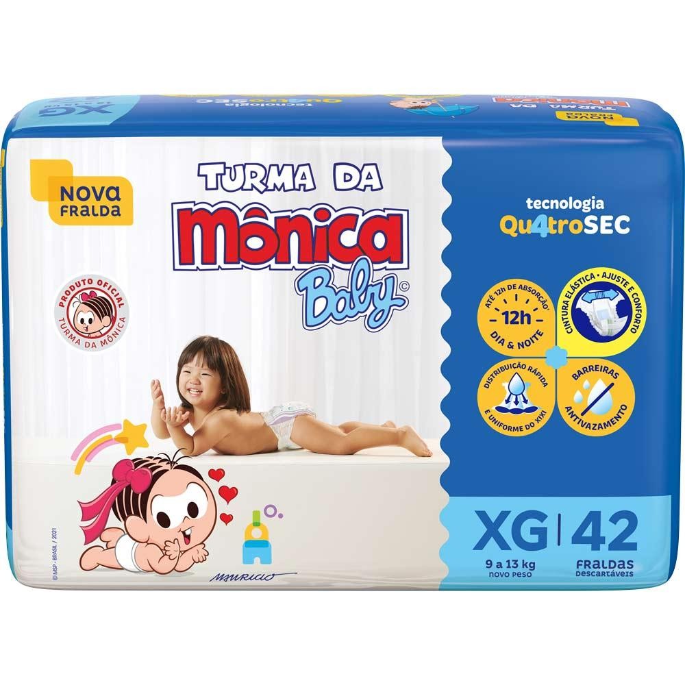 **Produto Original** Nova Fralda Turma da Mônica Baby com Tecnologia Qu4troSec: Possui um exclusivo sistema de canal que distribui mais rápido o xixi, barreiras antivazamento e uma fina camada extra que ajuda a manter o bebê sequinho por até 12 horas, além de ter cintura elástica, que proporciona um perfeito ajuste no corpinho, assim ele fica calmo, tranquilo e seguro durante o dia e a noite toda.