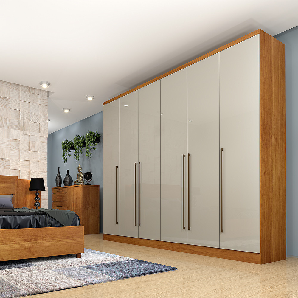 O local onde você guarda suas roupas pessoais deve ser projetado de acordo com o seu estilo de vida e também com o tamanho da sua casa. O Guarda-Roupas é uma peça fundamental no quarto, mas nem sempre é dada a importância que eles merecem. Aproveitar o espaço dedicado a essa área e guardar e organizar roupas ou acessórios é o segredo para seu bem-estar e para não ter outras áreas da casa invadidas pela má organização e bagunça. Pensando nisso a Tcil apresenta o Guarda Roupa Casal 6 Portas 8 Gavetas Sevilla que une versatilidade, beleza e qualidade em um só produto, além de contar com um designer minimalista e puxadores em alumínio de alto acabamento que se destacam no ambiente. Características Técnicas: Guarda Roupa Casal Marca: Tcil Modelo: Sevilla Produto em MDP Interior Com Espaço Ele e Ela 8 Gavetas Com Corrediças Telescópicas Puxadores Em Alumínio de Alto Acabamento Portas de Bater 8 Prateleiras Independentes Espaço para Roupas Longas Maleiro Amplo Dobradiças de 26 mm Metálicas Puxador Interno Em PVC Cabideiros Em Alumínio 1 Calceiro Dimensões do produto: Altura: 234,2 cm Largura: 270 cm Profundidade: 55,5 cm Peso: 215,6 kg Garantia do Fornecedor: 3 meses