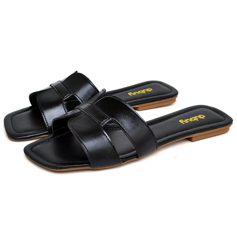 Sandália Rasteira Feminina Bico Quadrado Preto Original Dubuy Lisa 2080DB