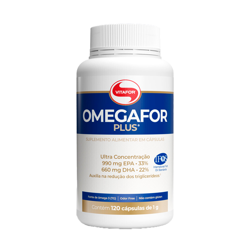 O Omegafor Plus é um suplemento alimentar com alta concentração de ácidos graxos EPA e DHA, provenientes de ômega 3 na forma TG (triglicerídeos), que favorece a absorção. Com 990 mg de EPA e 660 mg de DHA por porção diária, é indicado para complementar a ingestão de ômega 3 em uma dieta equilibrada.Este produto é desenvolvido com tecnologia que elimina odores indesejados, proporcionando uma suplementação confortável. Ultra concentração 990 mg de EPA 660 mg de DHA Fonte de Ômega 3 (TG) Livre de odor Não contém glúten INGREDIENTES Óleo de peixe. Composição da cápsula: Gelatina, água purificada e umectante glicerina. ALÉRGICOS: Contém peixe. NÃO CONTÉM GLÚTEN. SUGESTÃO DE USO Uso adulto (a partir de 19 anos): ingerir 3 cápsulas ao dia (totalizando 3 g) ou conforme a recomendação de um profissional de saúde.