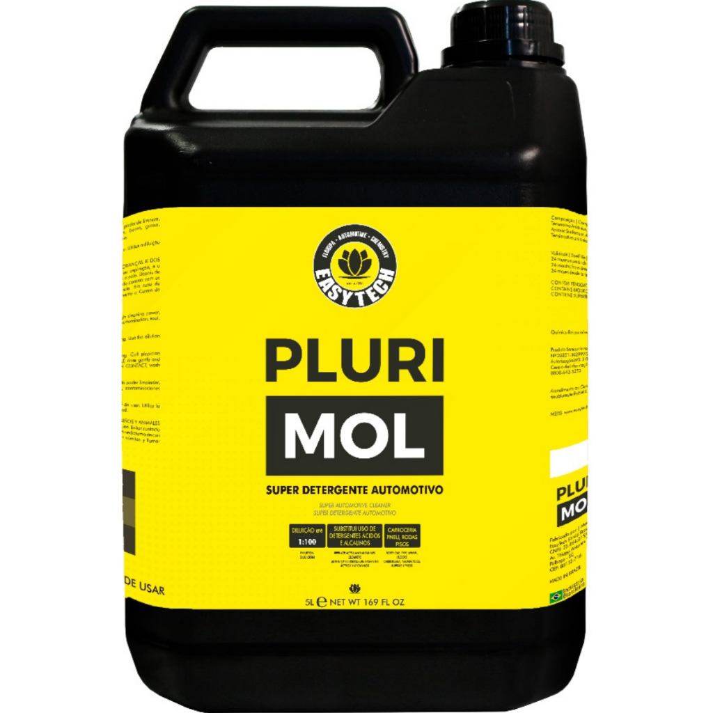 PLURI MOL 5L EASYTECH DESCRIÇÃO: Desincrustante ácido, desengraxante alcalino, detergente e descontaminante ferroso em 1 unico produto. Este é o PLURI MOL. Um produto revolucionário, capaz de substituir o uso de produtos ácidos e alcalinos no processo de lavagem pesada. Pluri MOL é 4 em 1: penetra e desprende sujeiras pesadas, contaminação ferrosa, fuligem, óleos e gorduras. Perfeito para remoção de barro, pintura amarelada, limpeza de motor, caixa de roda, fuligem. PLURI MOL faz o que nenhum outro produto MOL no mercado faz. Diga adeus ao uso de detergentes ácidos e super alcalinos. Para qualquer tipo de sujeira, basta escolher a diluição adequada, com bastante segurança. Pluri MOL é tão versátil que pode ser usado para limpeza de rodas, pneu, vidros, pintura automotiva, pisos. Sua capacidade de desprendimento de sujeira é impressionante. MODO DE USO: 1- Certifique-se de que a superfície esteja fria e dilua Pluri Mol de acordo com a sujeira; 2- Não jogue água na superfície antes de aplicar Pluri Mol; 3- Após borrifar Pluri Mol na sujeira, aguarde por 1 a 2 minutos a ação do produto; 4- Borrife com um jato de água de baixo para cima, removendo a sujeira e o resíduo de produto;