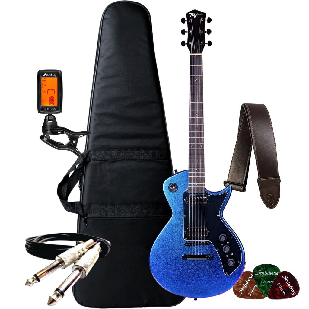 Itens Inclusos: 1x - Guitarra Tagima Elétrica Strato Sixmart 1x - Capa Guitarra Luxo Acolchoada 1x - Afinador Digital 1x - Correia Marrom Liso 3x - Palheta Sortida Guitarra 1x - Cabo P10 P10 5 Metros A guitarra inteligente Tagima Sixmart une tradição e inovação para músicos exigentes, oferecendo versatilidade sonora e conforto incomparável. Com corpo em basswood e braço em maple, ela garante tocabilidade suave e acabamento premium. Seus captadores cerâmicos proporcionam uma ampla gama de timbres, desde sons limpos e cristalinos até tons pesados e encorpados. Os controles incluem uma chave de 5 posições com efeitos integrados como delay, reverb, overdrive e distortion. Com saídas para fone de ouvido e gravação de áudio, você pode praticar e registrar suas músicas com qualidade profissional em qualquer lugar. As tarraxas diecast garantem afinação estável, enquanto o visual do instrumento adiciona um toque de sofisticação, combinando beleza e um som de alta qualidade. Especificações: Modelo: 2S 1H Marca: Tagima Corpo: Basswood Braço: Maple Shape c Escala: Purple heart – 22T - C 25.5” – R 9.5” Nut: 43mm Captadores: Humbucker cerâmico e 2 Single coils cerâmicos By Tagima Controles: Chave 5 posições, volume, tonalidade, delay, reverb, overdrive e distortion + Saída para fone de ouvido / Saída para gravação de áudio Ponte: Tremolo Tarraxas: Diecast Escudo: Black