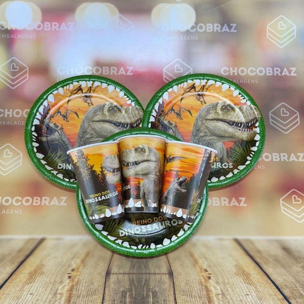 Kit Festa DINOSSAURO 8 Pratos + 8 Copos Descartável 180 Ml Papel - REGINA | Home & Living