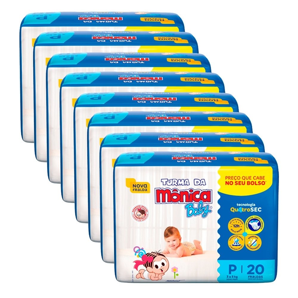 Fralda Descartável Turma da Mônica Jumbinho Tamanho P - 8 Pacotes com 20 Fraldas - Total 160 Tiras - 43% OFF | Mom & Baby